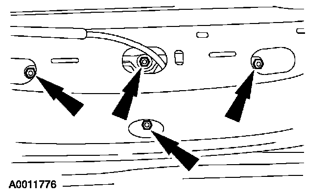 6. CAUTION: Use care when unsnapping the ends of the spoiler from the decklid. The spoiler may slide across the decklid marring the exterior finish.