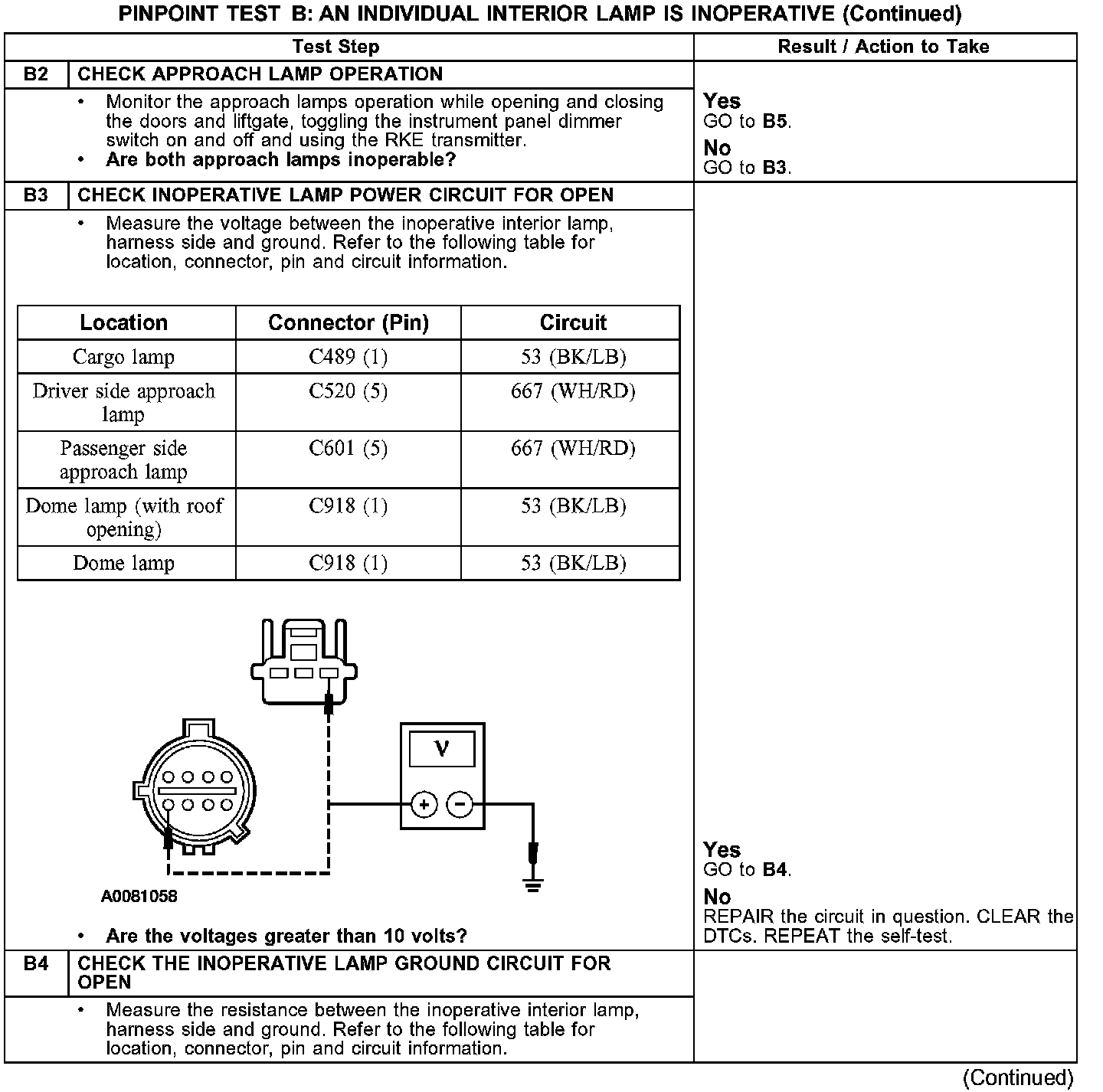 PINPOINT TEST B: AN INDIVIDUAL INTERIOR LAMP IS INOPERATIVE