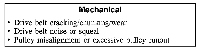 Under severe operating conditions (high temperature, low humidity), drive belt rib cracking can occur at less than 96,000 km (60,000 miles). Drive belt rib cracking (cracks across grooves):