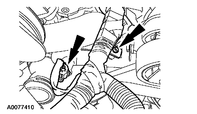 7. Remove the pin-type retainer, disconnect the Engine Coolant Temperature (ECT) sensor electrical connector and position the harness aside.
