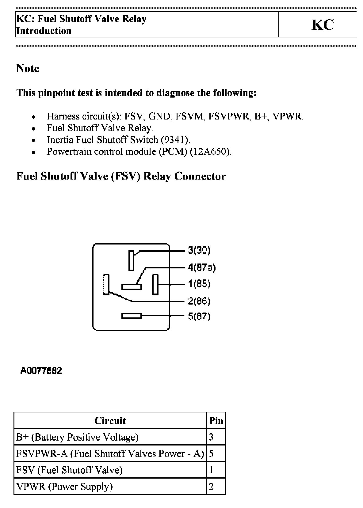 PINPOINT TEST KC: FUEL SHUTOFF VALVE RELAYKC Introduction 1 Of 3: