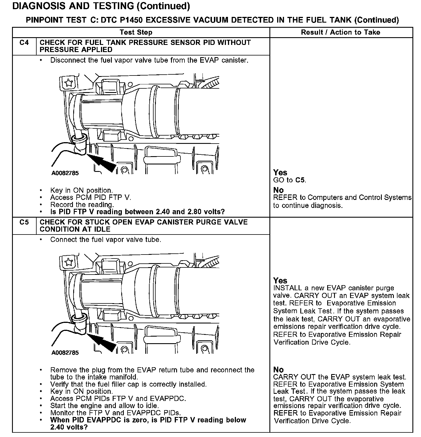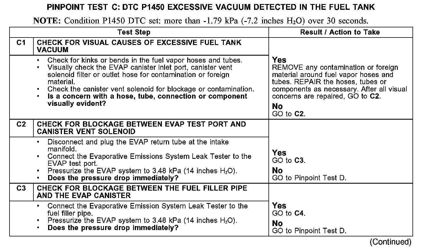 PINPOINT TEST C: DTC P1450 EXCESSIVE VACUUM DETECTED IN THE
