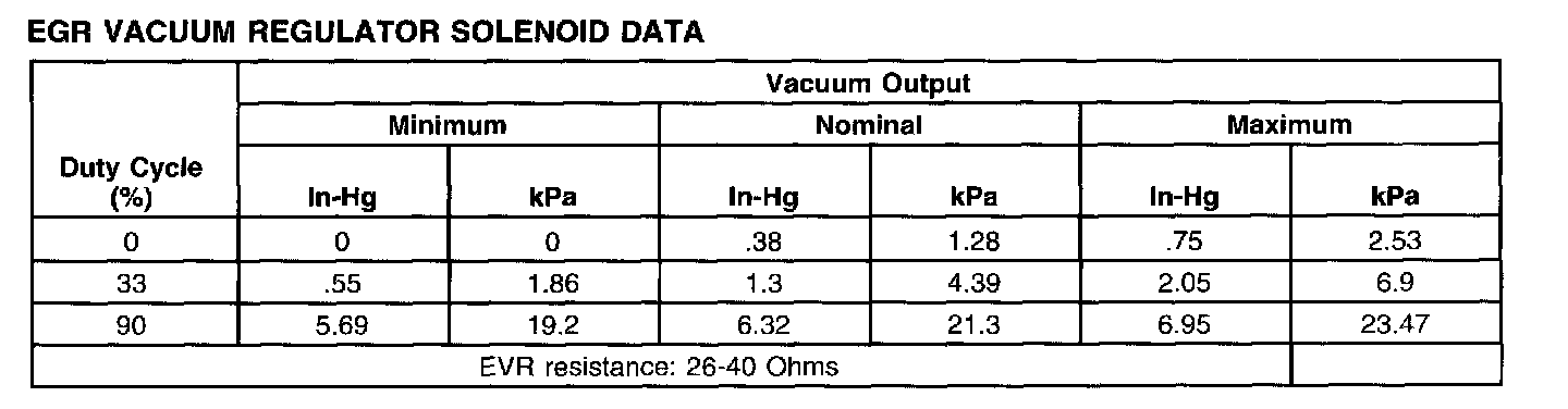 EGR Vacuum Regulator Solenoid Data Chart: