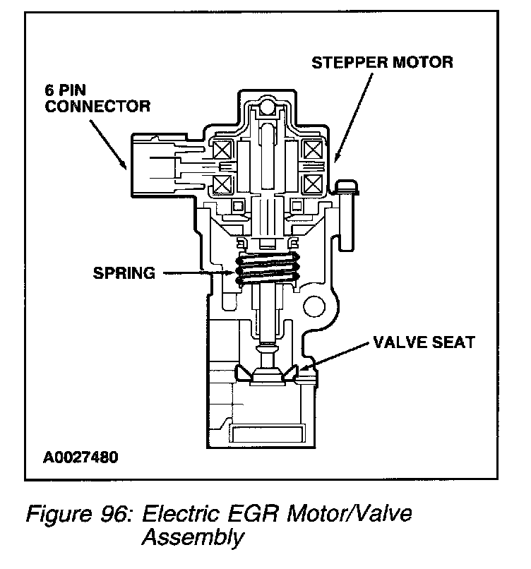 3. The PCM in turn will output signals to the EEGR motor to move (advance or retract) a calibrated number of discrete steps. The electric stepper motor will directly actuate the EEGR valve, independent of engine vacuum. The EEGR valve is commanded from 0 to 52 discrete steps to get the EGR valve from a fully closed to fully open position. The position of the EGR valve determines the EGR flow.