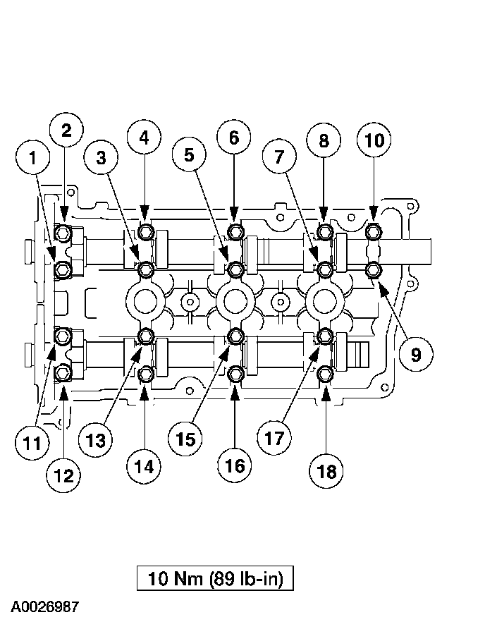 Camshaft cap bolts 10 Nm (89 inch lbs.)