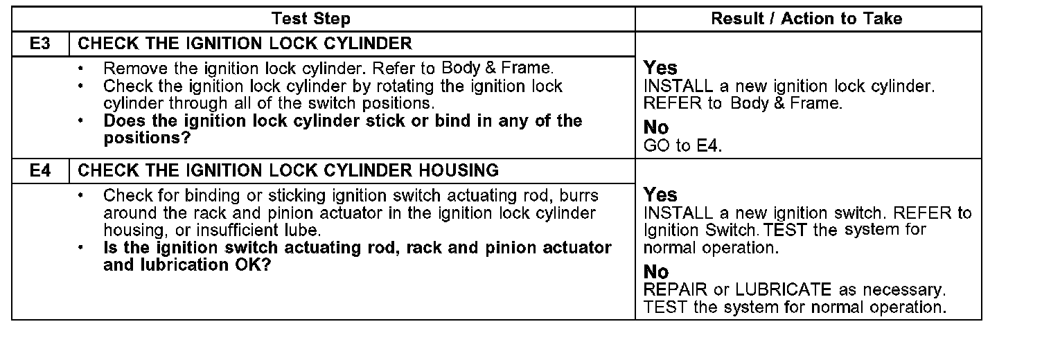 PINPOINT TEST E: THE IGNITION KEY IS HARD TO TURN