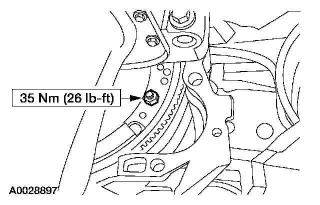 9. Install new torque to flexplate nuts.