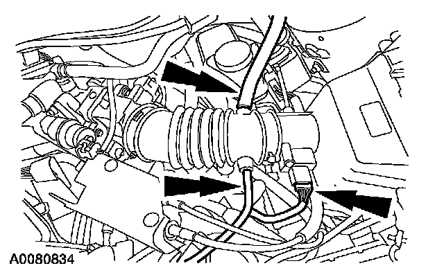33. Reconnect the Mass Air Flow (MAF) sensor and the breather tubes.