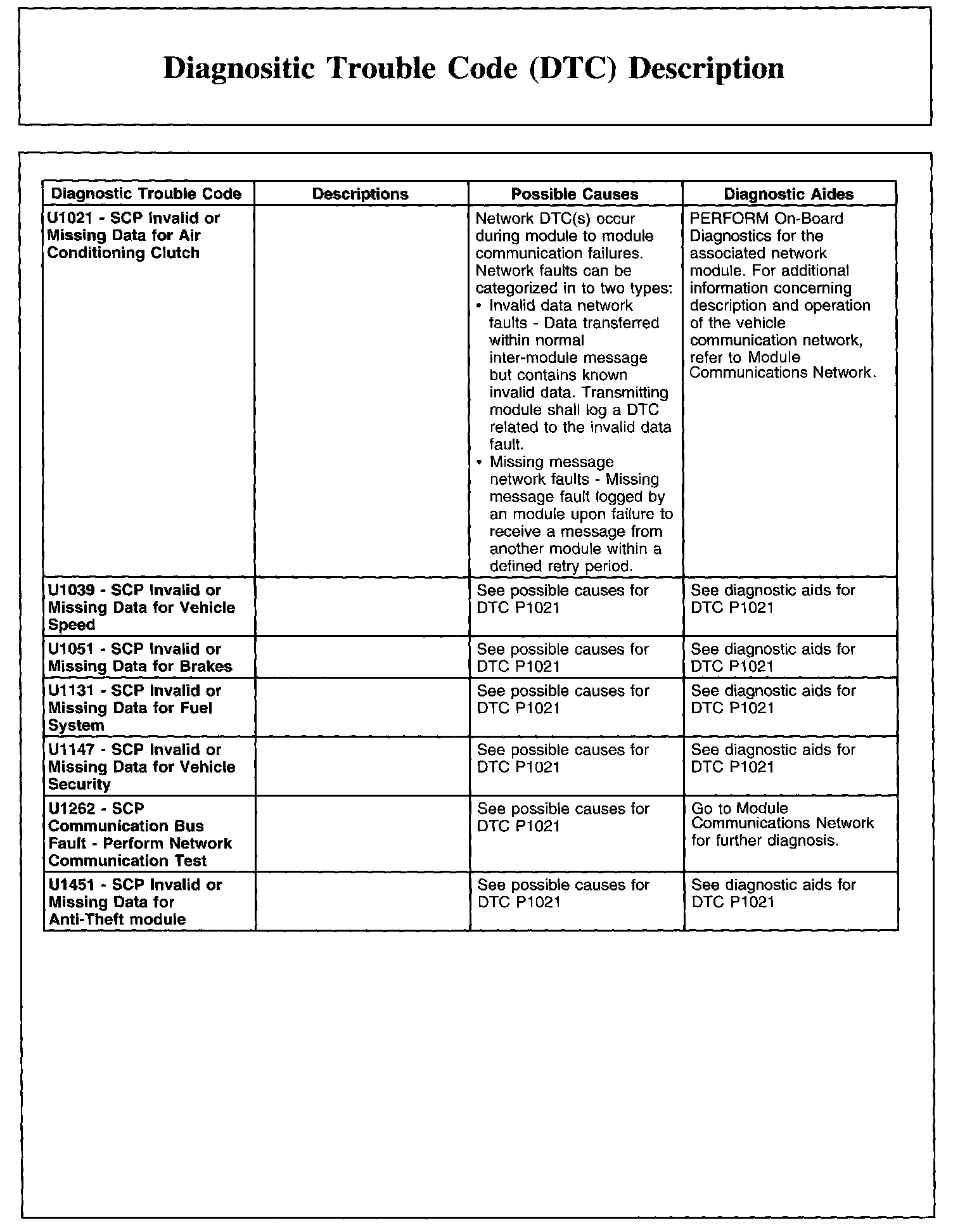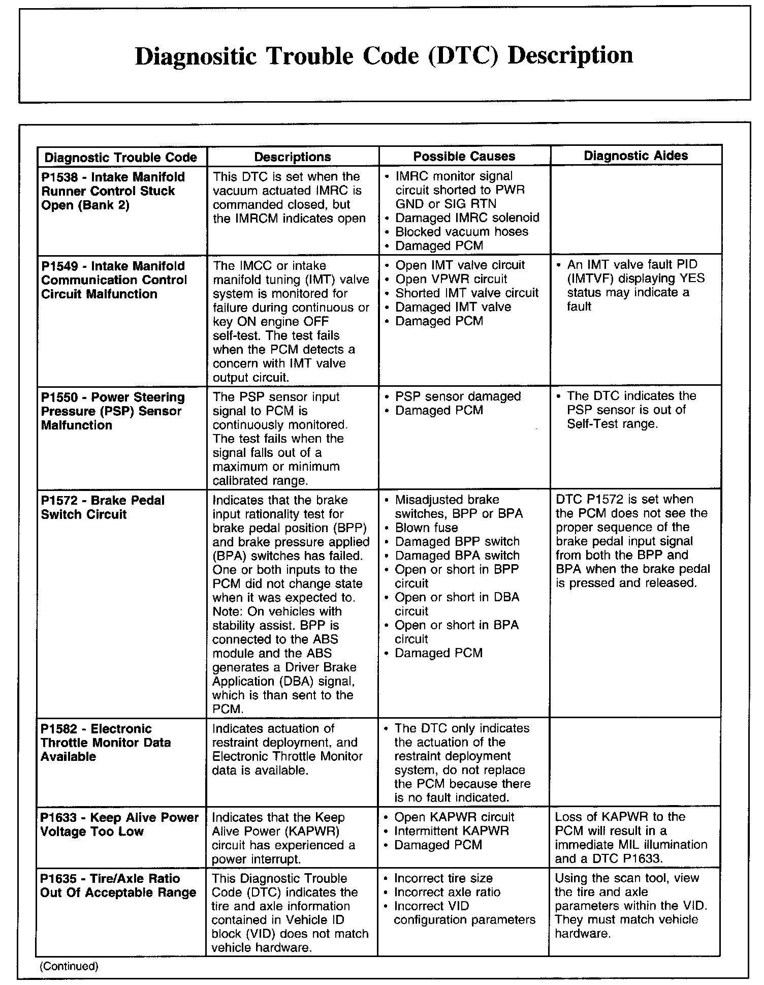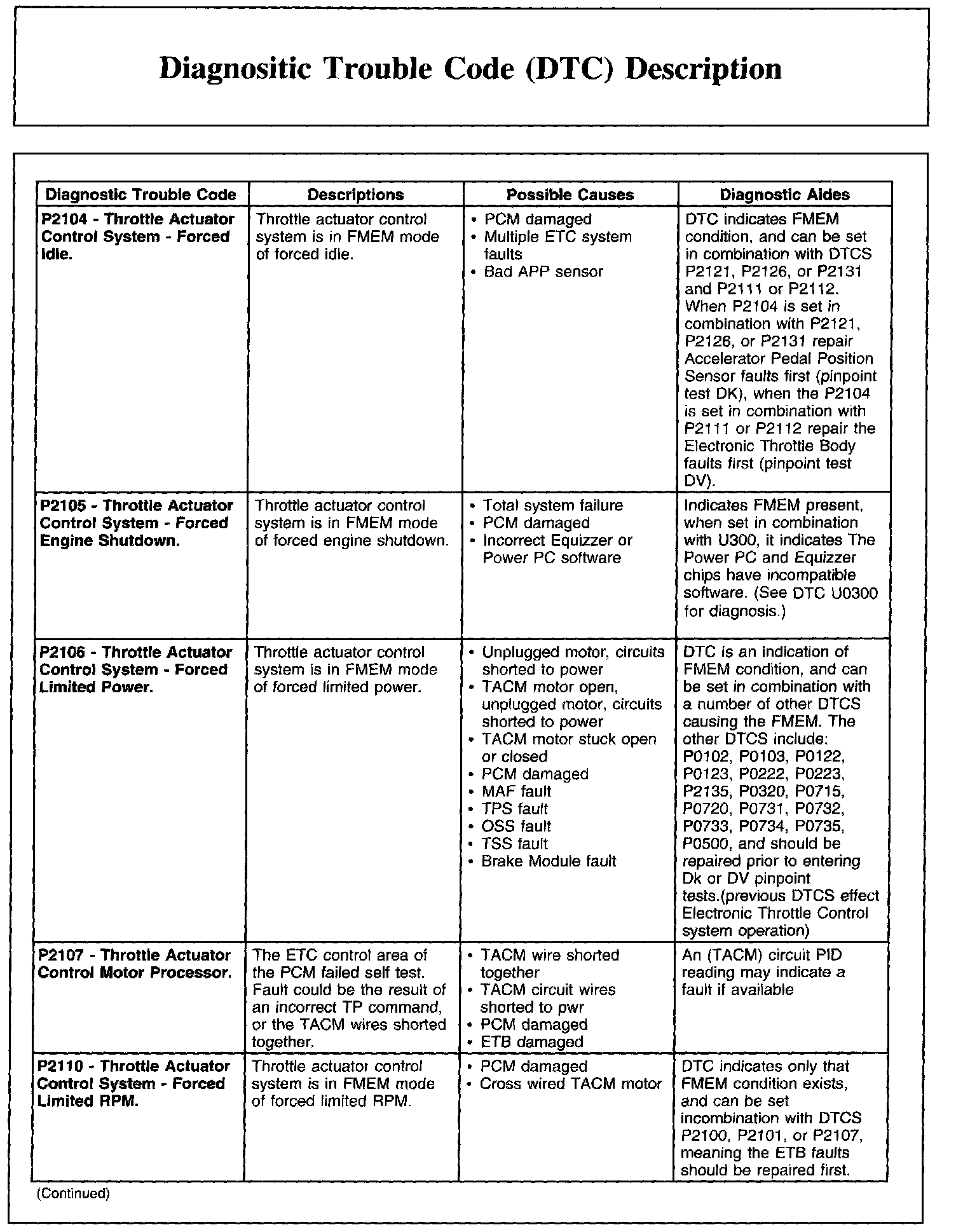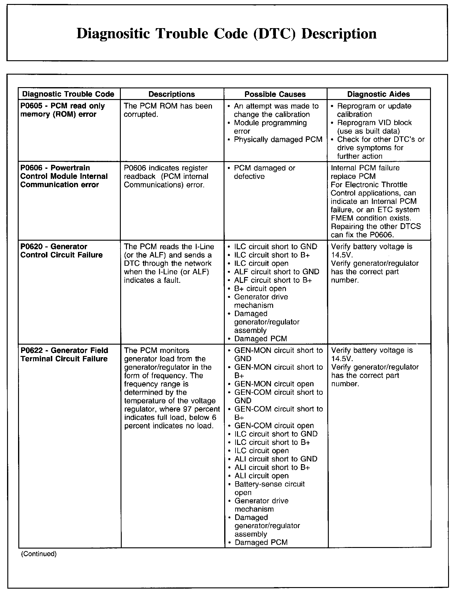DIAGNOSTIC TROUBLE CODE (DTC) DESCRIPTIONP0605-P0622: