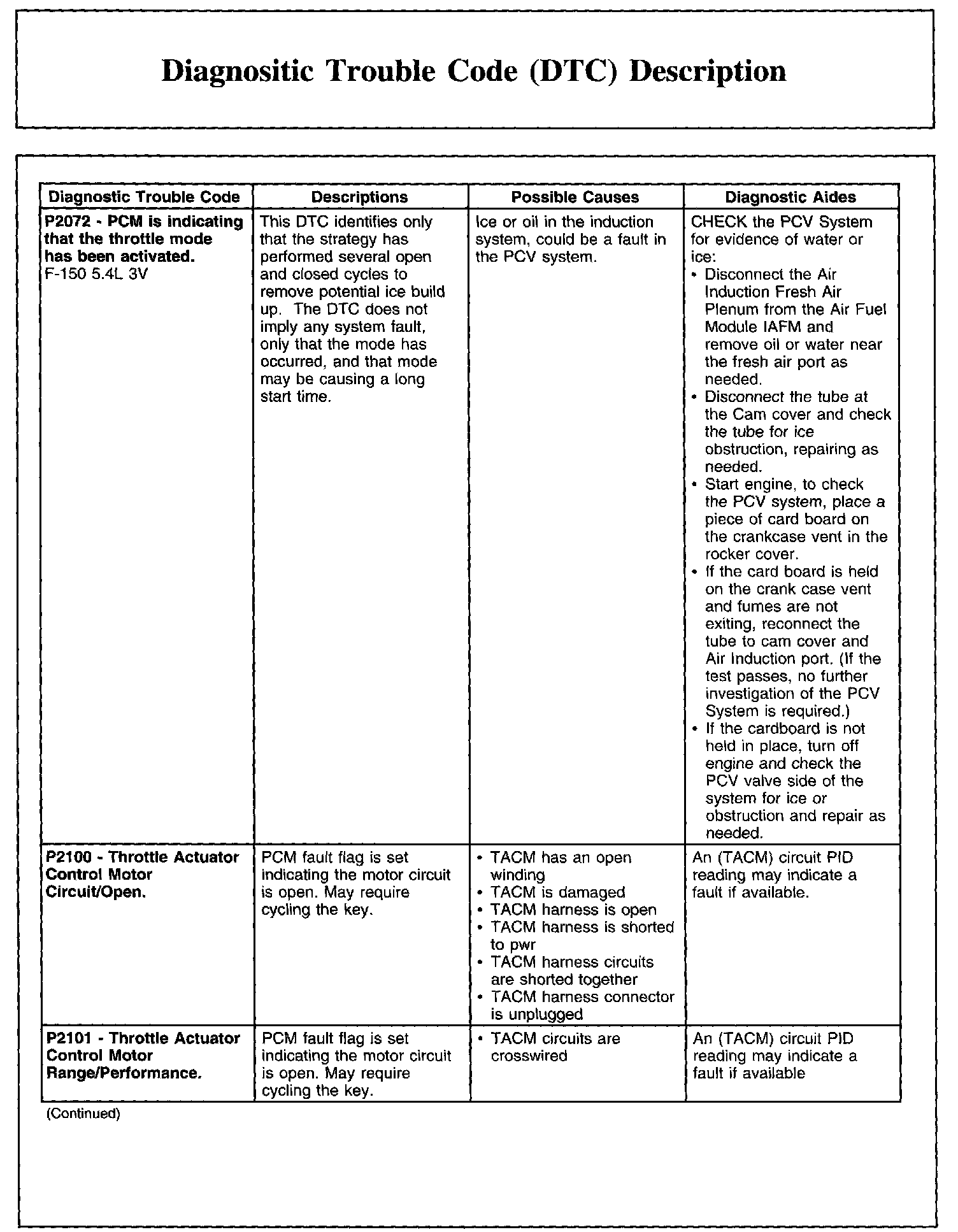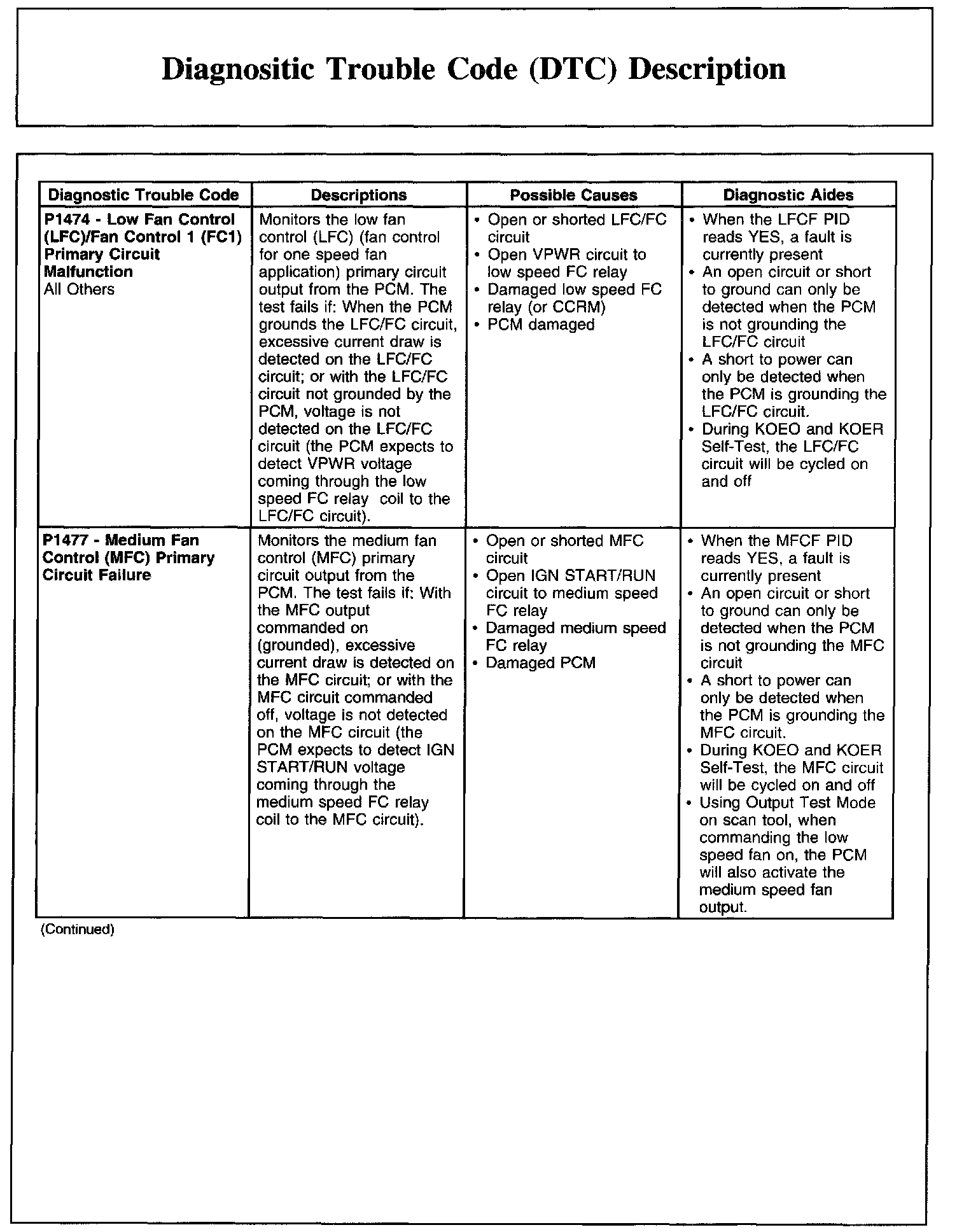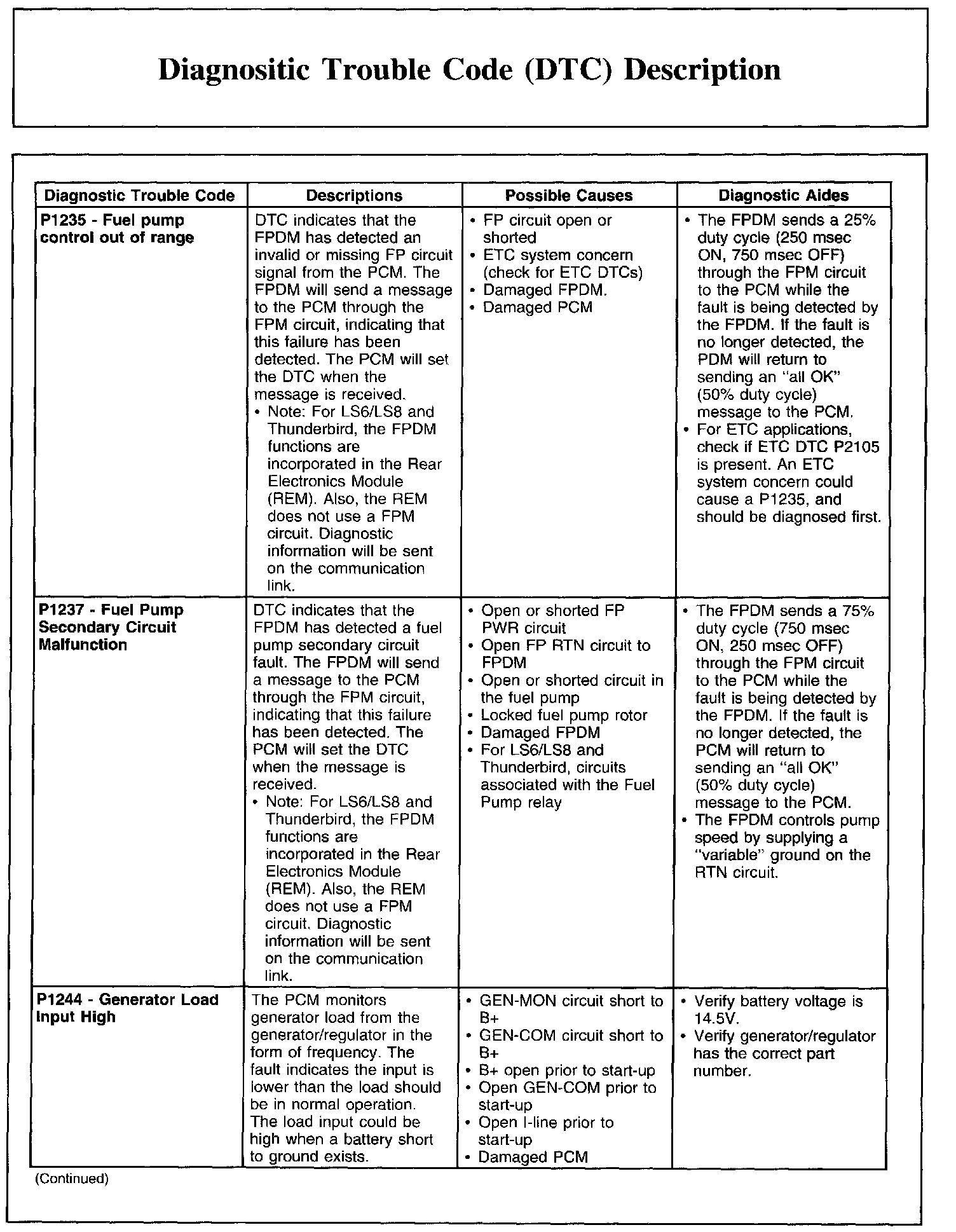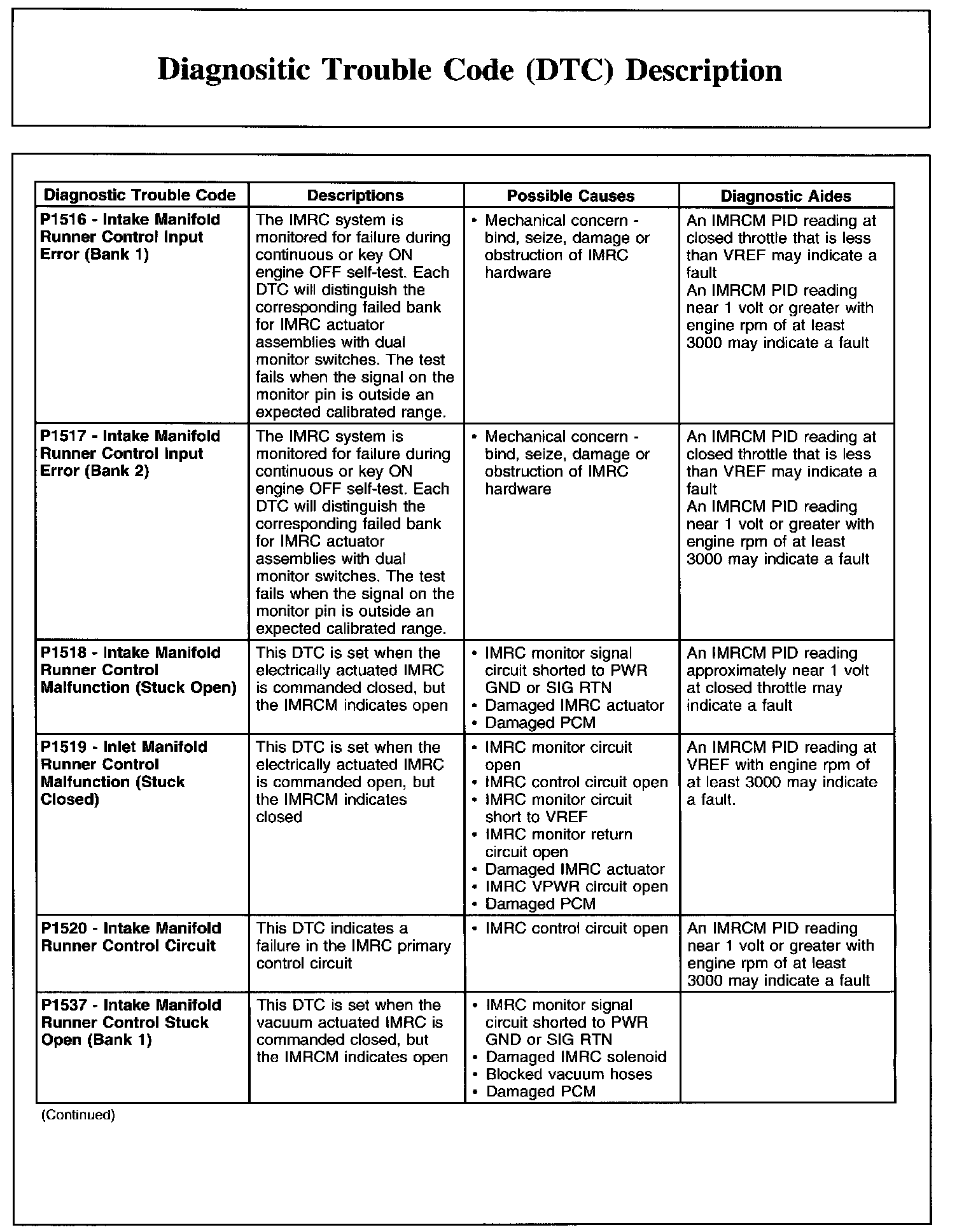 DIAGNOSTIC TROUBLE CODE (DTC) DESCRIPTIONP0605-P0622:
