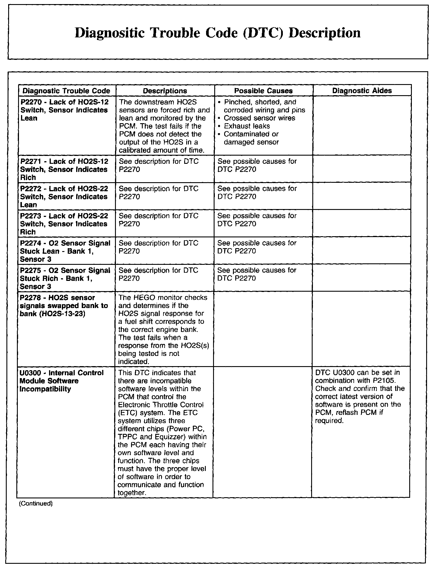 P2270-P2278 / U0300: