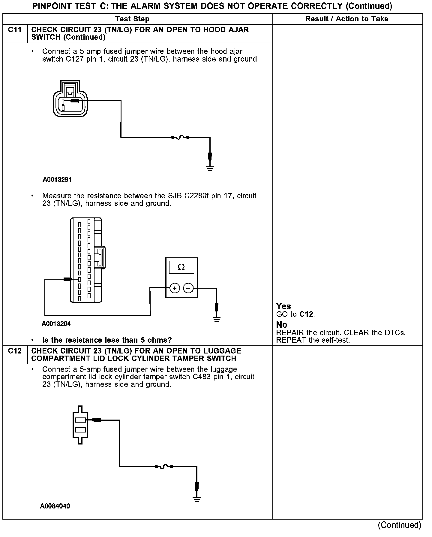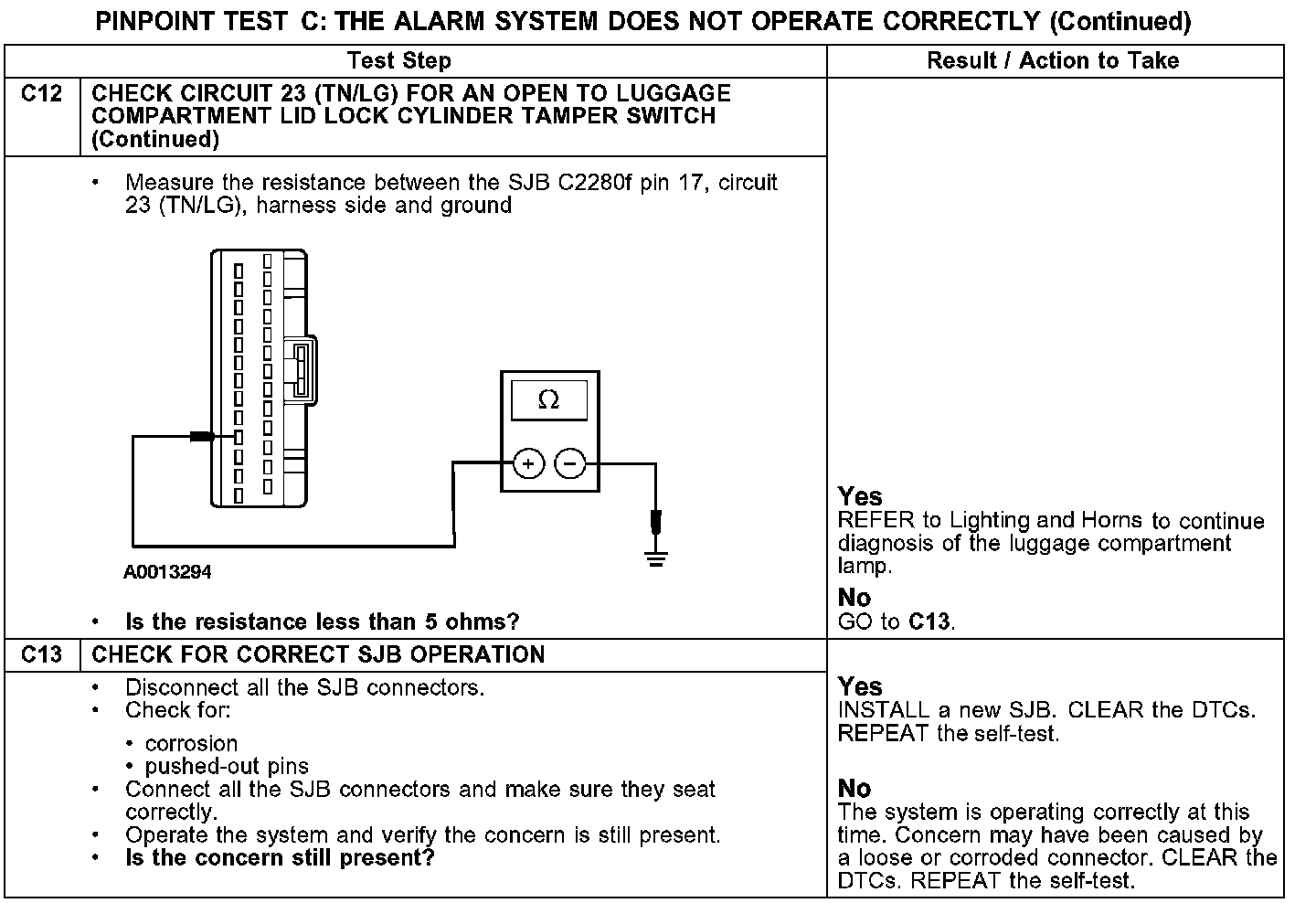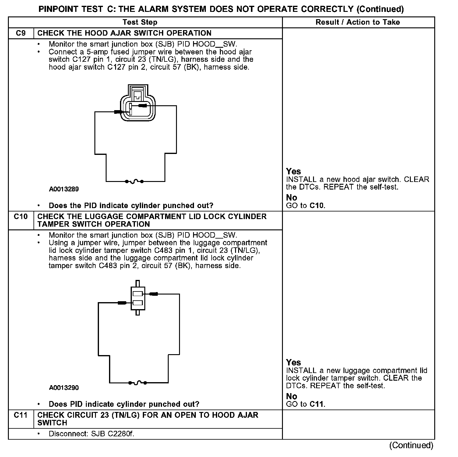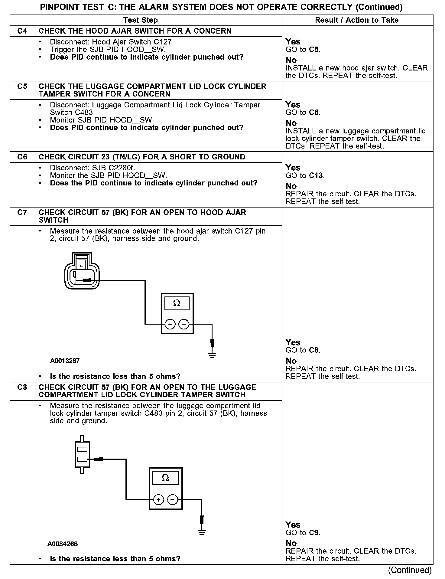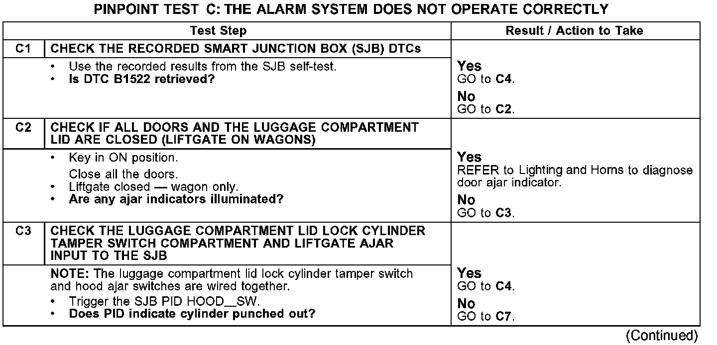 PINPOINT TEST C: THE ALARM SYSTEM DOES NOT OPERATE CORRECTLY