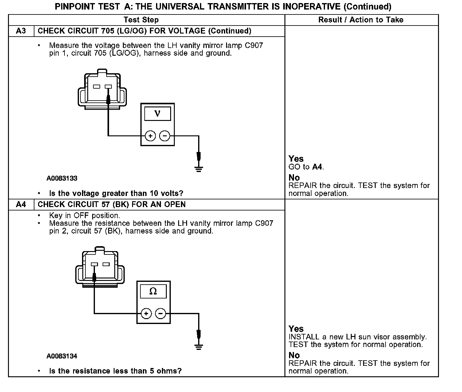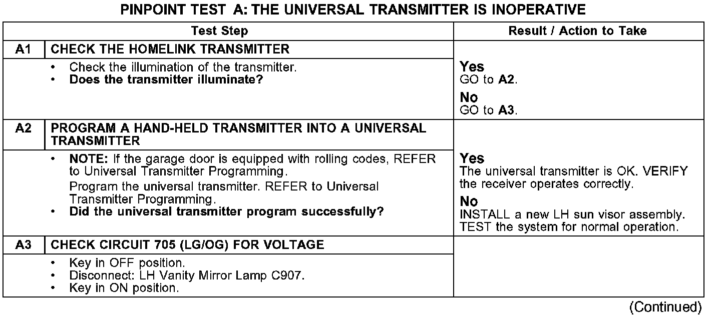 PINPOINT TEST A: THE UNIVERSAL TRANSMITTER IS INOPERATIVE