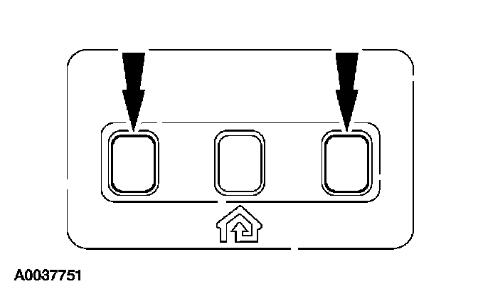 2. Prepare for programming the universal transmitter, erase all three channels by holding down the two outside buttons until the red light begins to flash (20-30 seconds). Release both buttons.