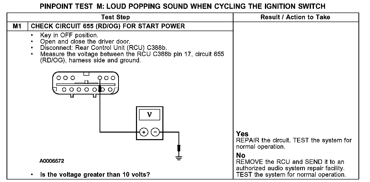 PINPOINT TEST M: LOUD POPPING SOUND WHEN CYCLING THE IGNITION SWITCH