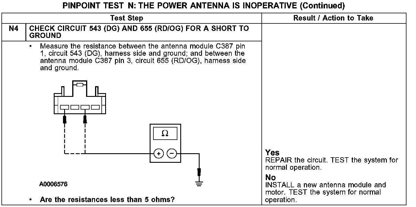 PINPOINT TEST N: THE POWER ANTENNA IS INOPERATIVE