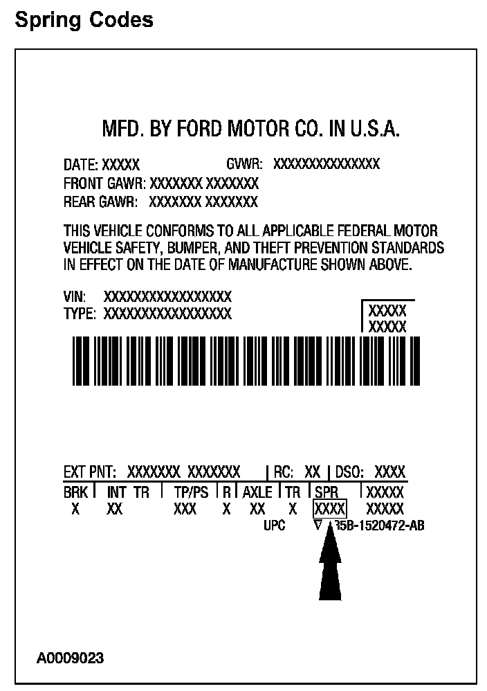 Spring codes list both front and rear spring codes. The first set of characters identify the front springs. The second set of characters identify the rear springs.