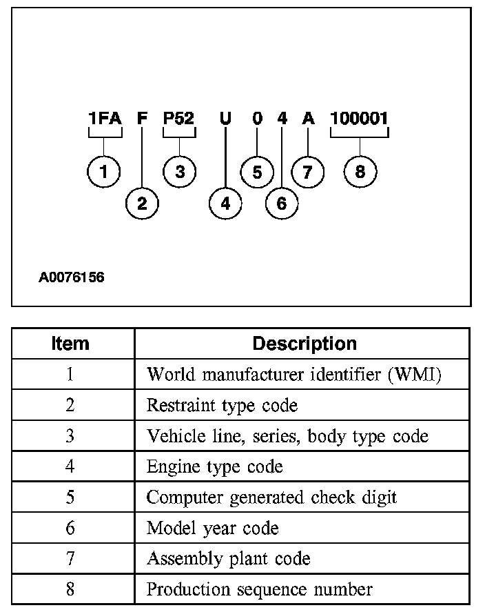 Positions 5 through 7 indicate vehicle line, series and body type.