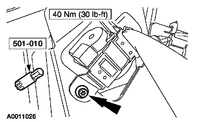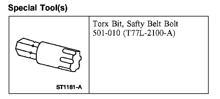 10. Using the special tool, remove the second row safety belt anchor bolt.