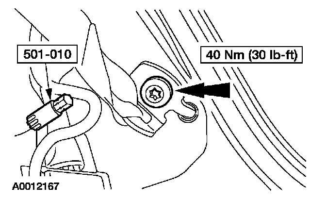 12. Using the special tool, remove the auxiliary seat safety belt retractor bolt and feed the safety belt through the quarter trim panel.