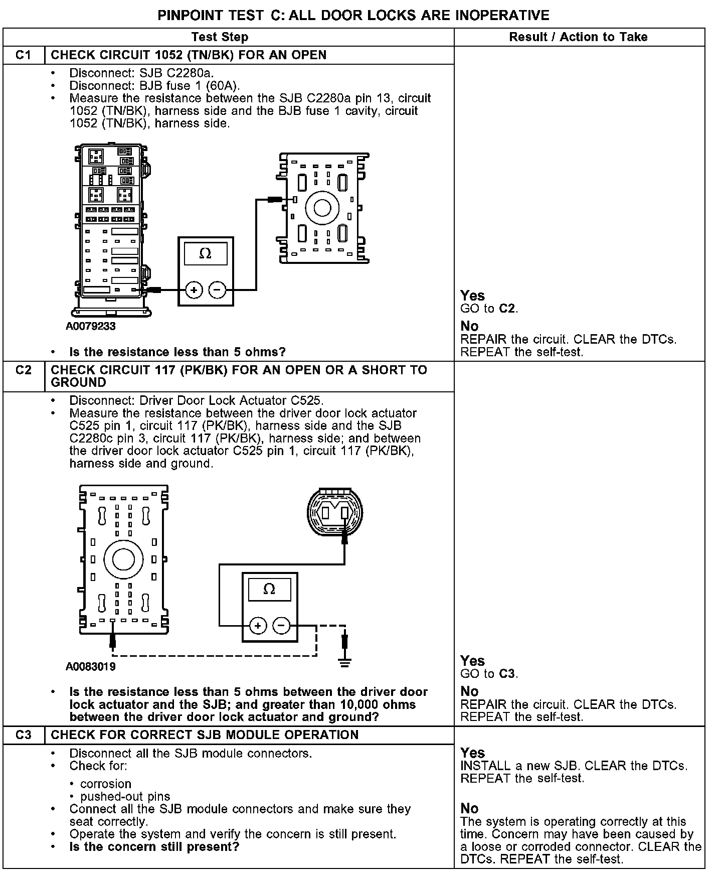 PINPOINT TEST C: ALL DOOR LOCKS ARE INOPERATIVE