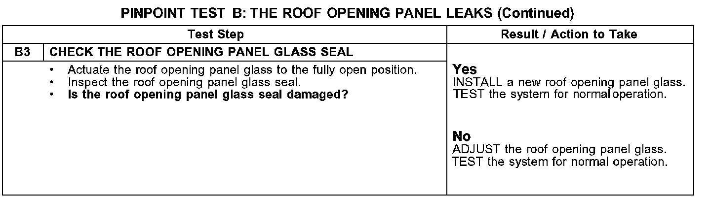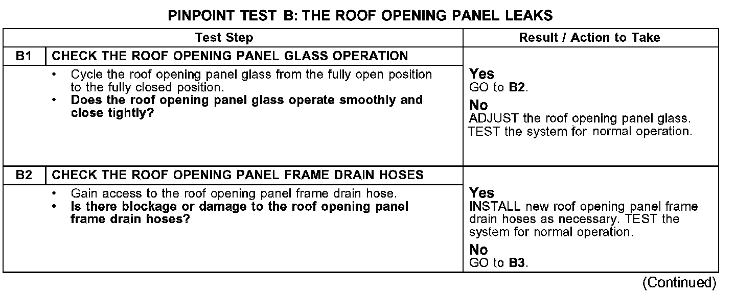 PINPOINT TEST B: THE ROOF OPENING PANEL LEAKS