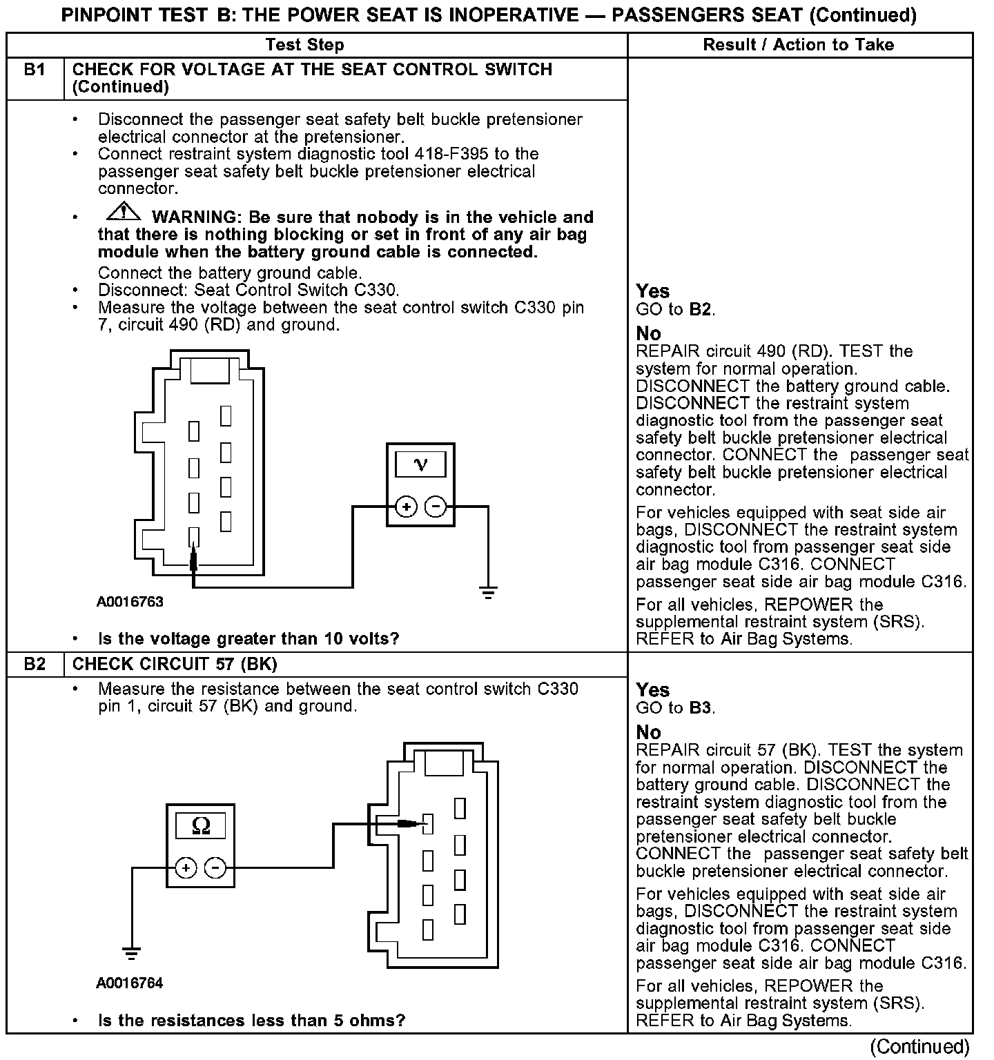 PINPOINT TEST B: THE POWER SEAT IS INOPERATIVE - PASSENGERS SEAT