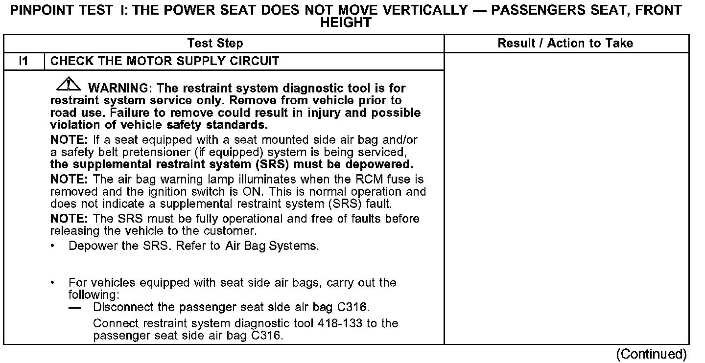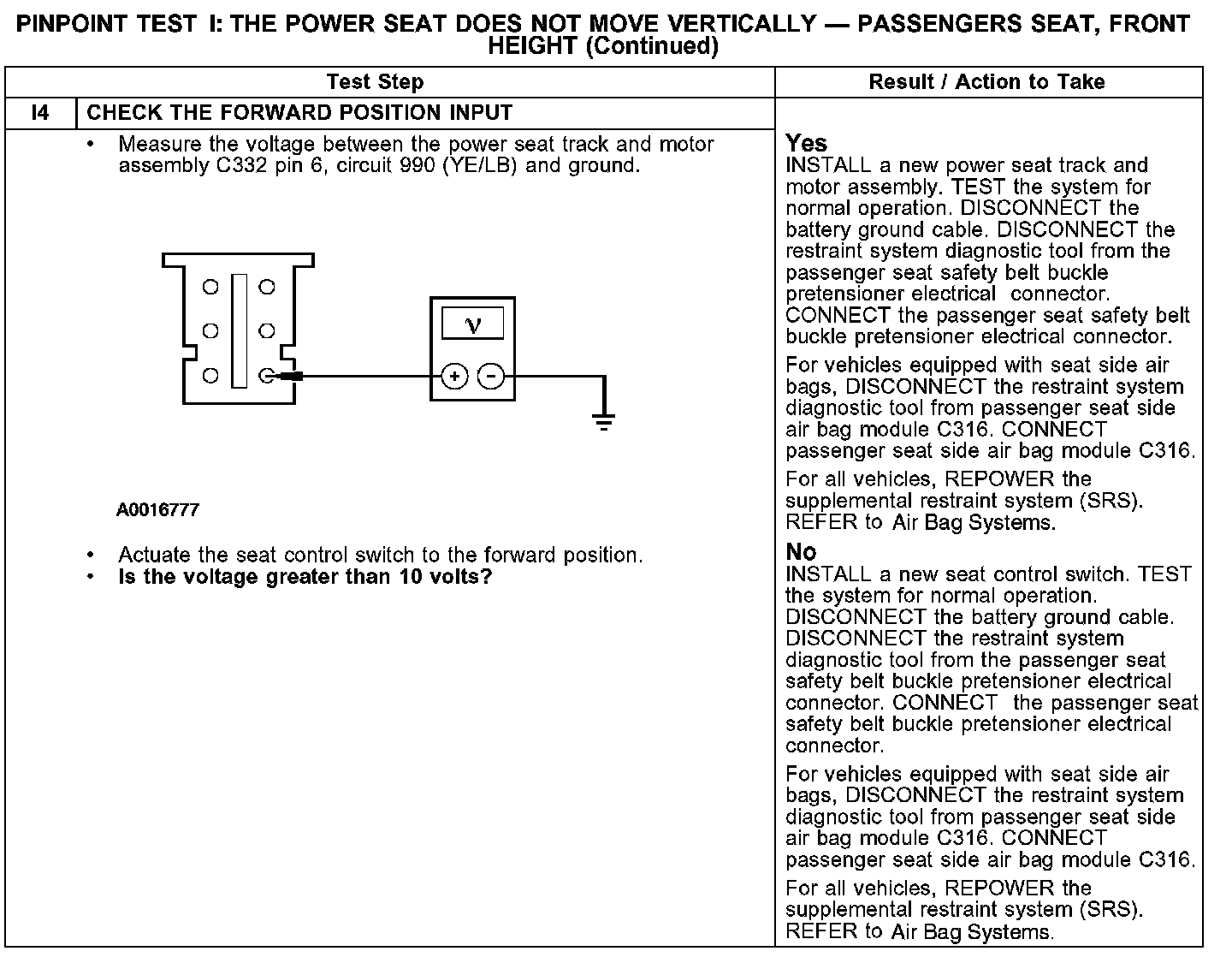 PINPOINT TEST I: THE POWER SEAT DOES NOT MOVE VERTICALLY - PASSENGERS SEAT, FRONT HEIGHT
