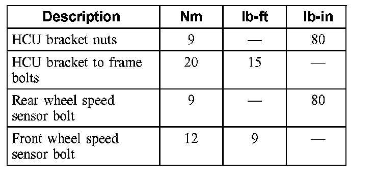 Torque Specifications