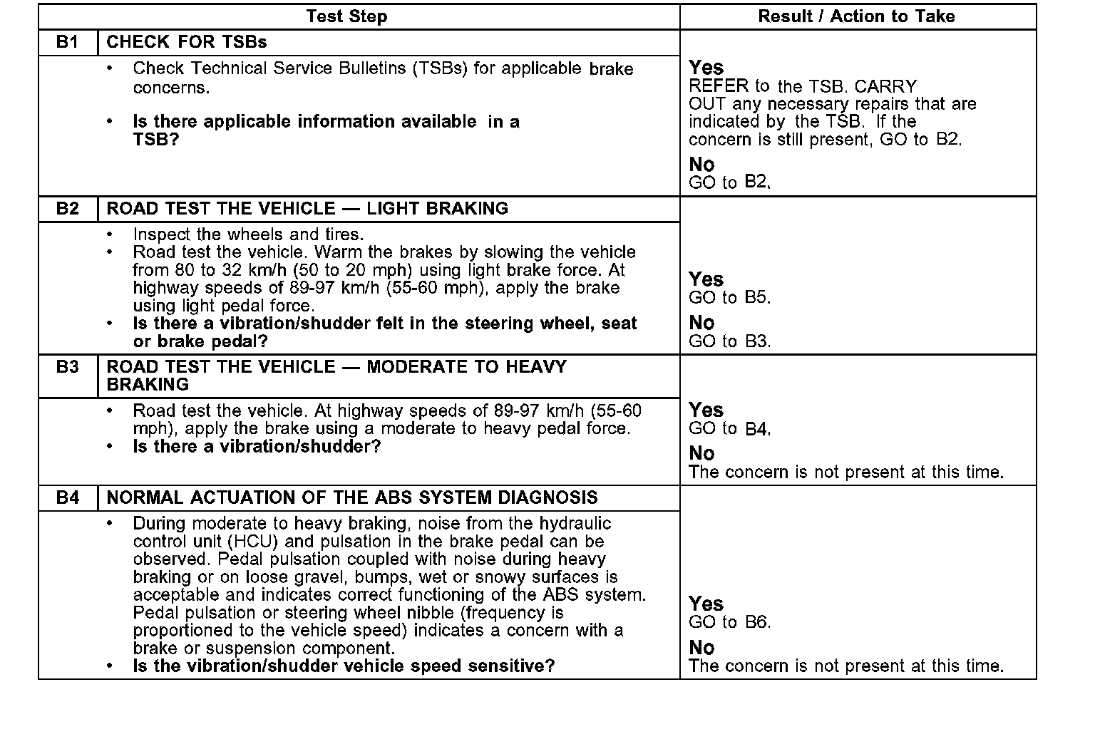 PINPOINT TEST B: VIBRATION WHEN THE BRAKES ARE APPLIED