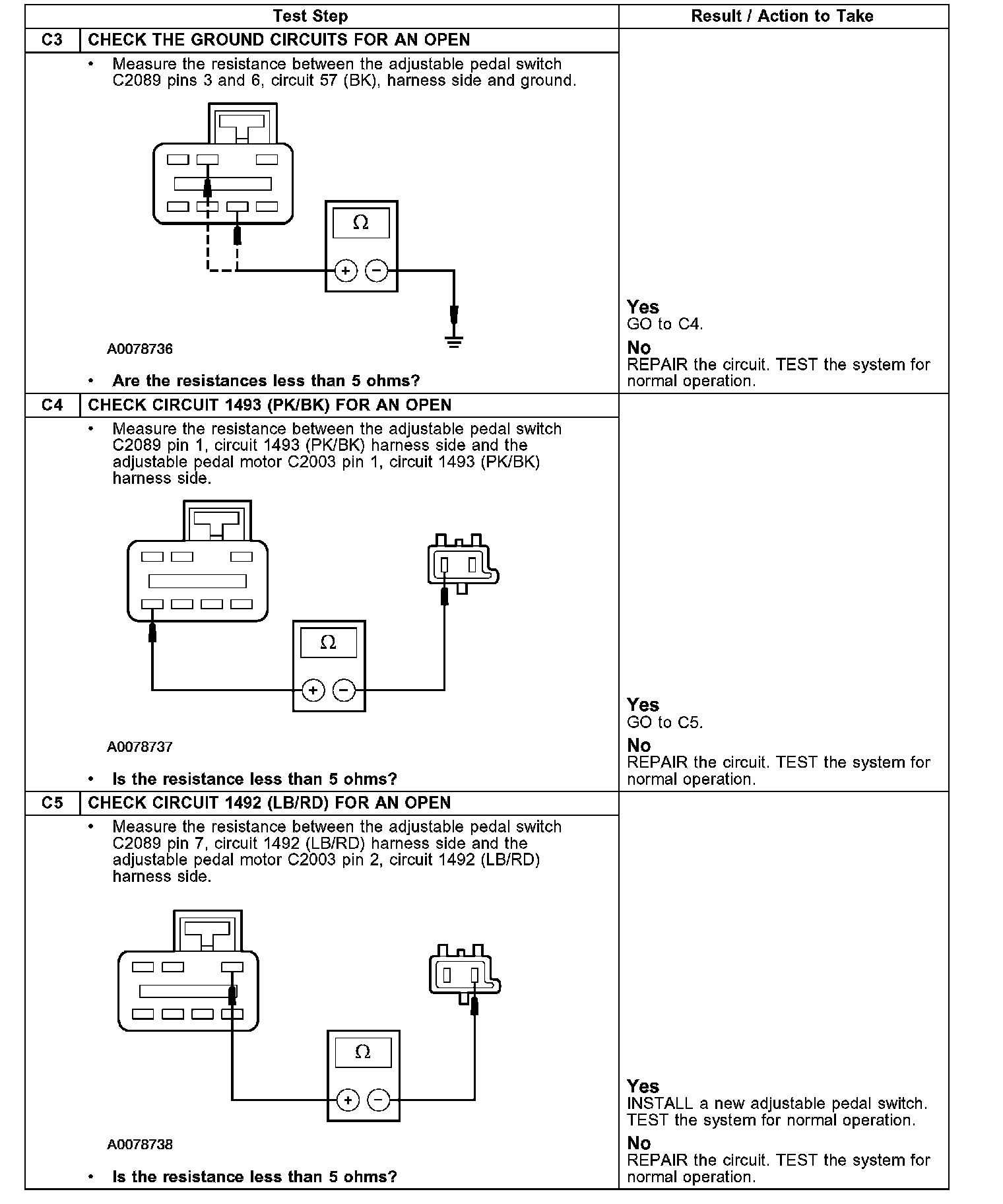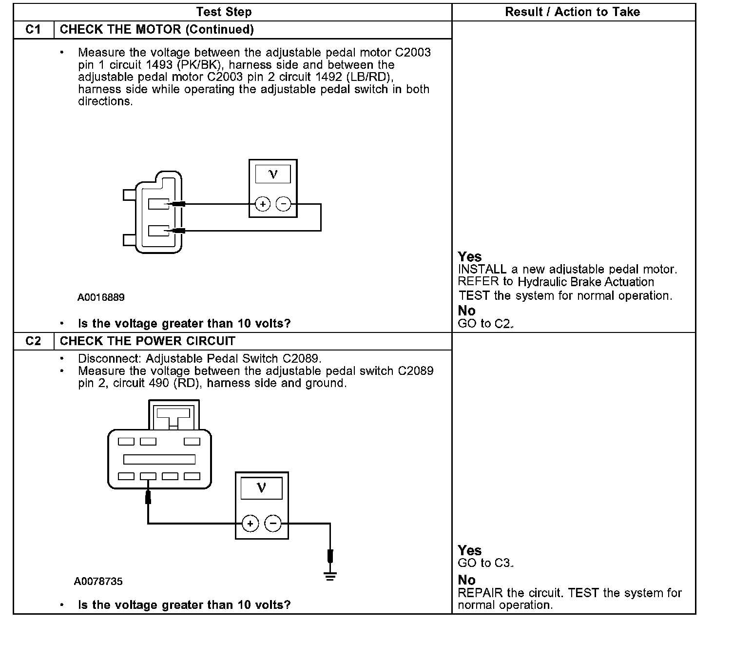 PINPOINT TEST C: ADJUSTABLE BRAKE PEDAL IS INOPERATIVE/DOES NOT OPERATE CORRECTLY