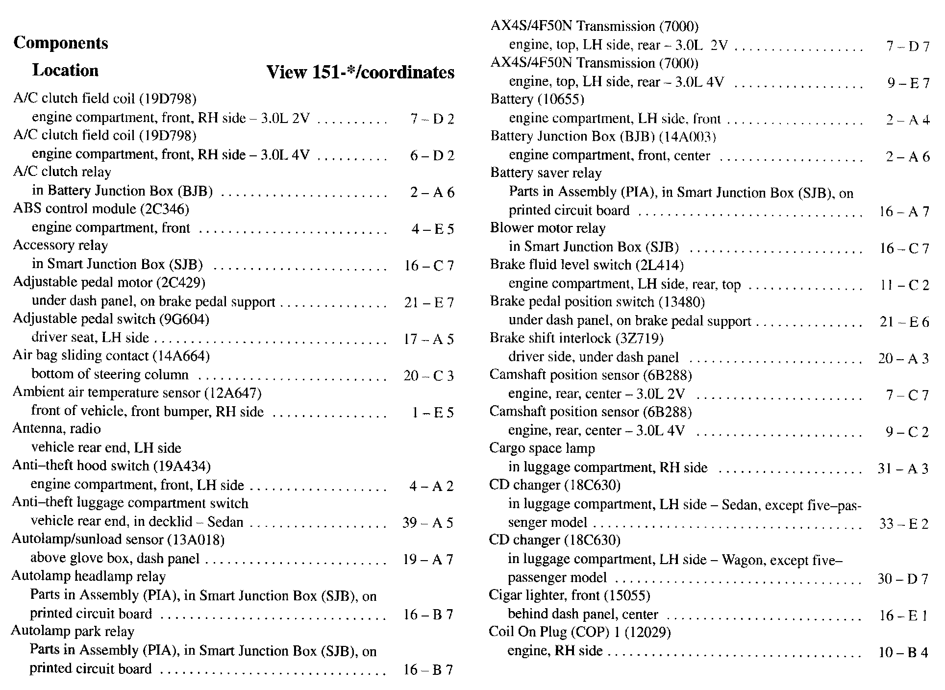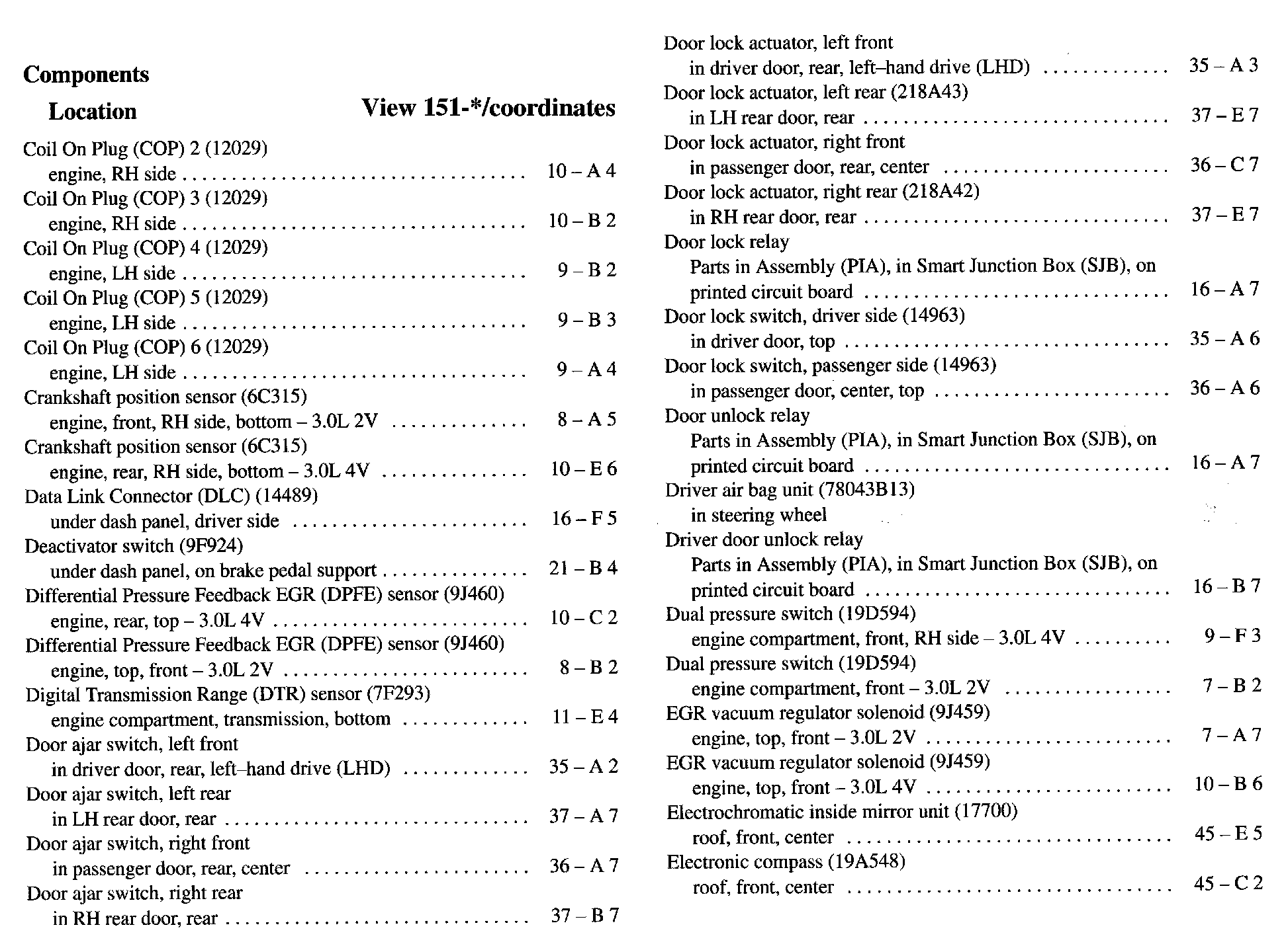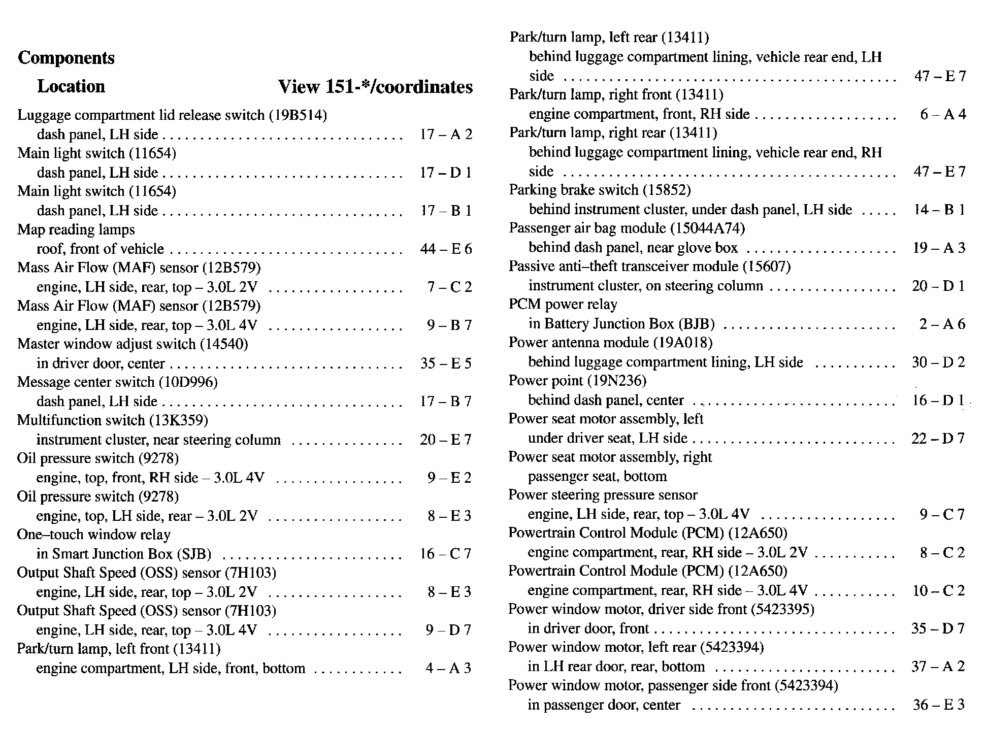 Component Location Index