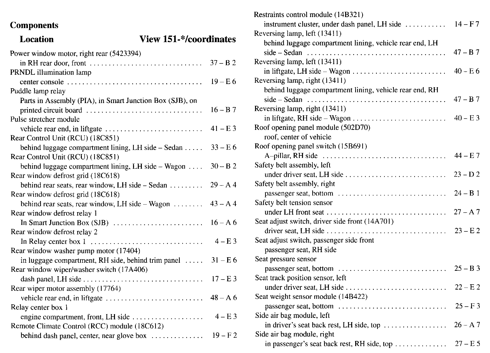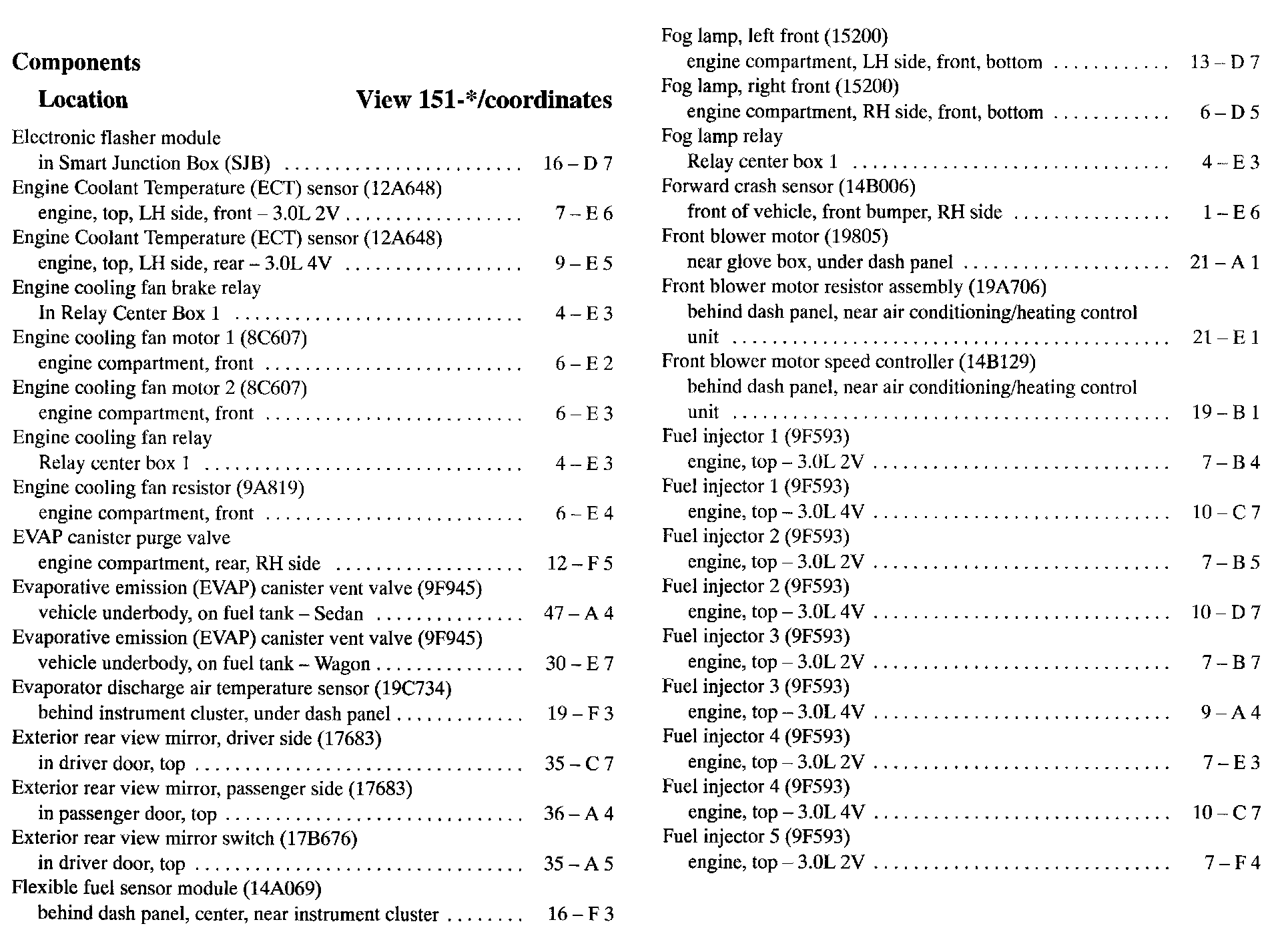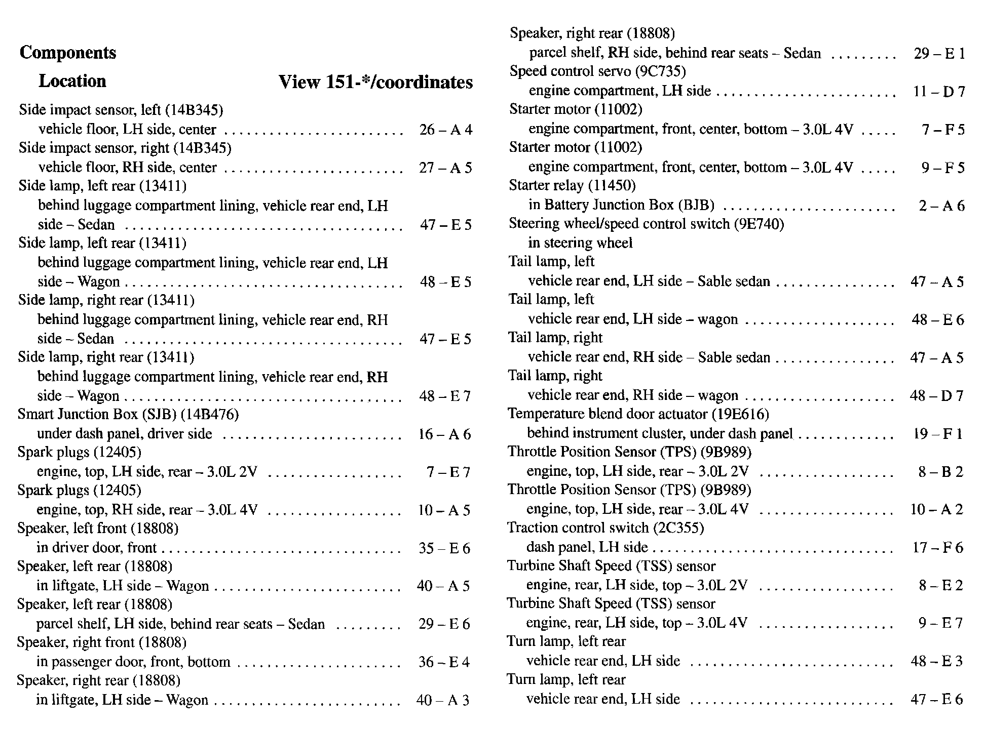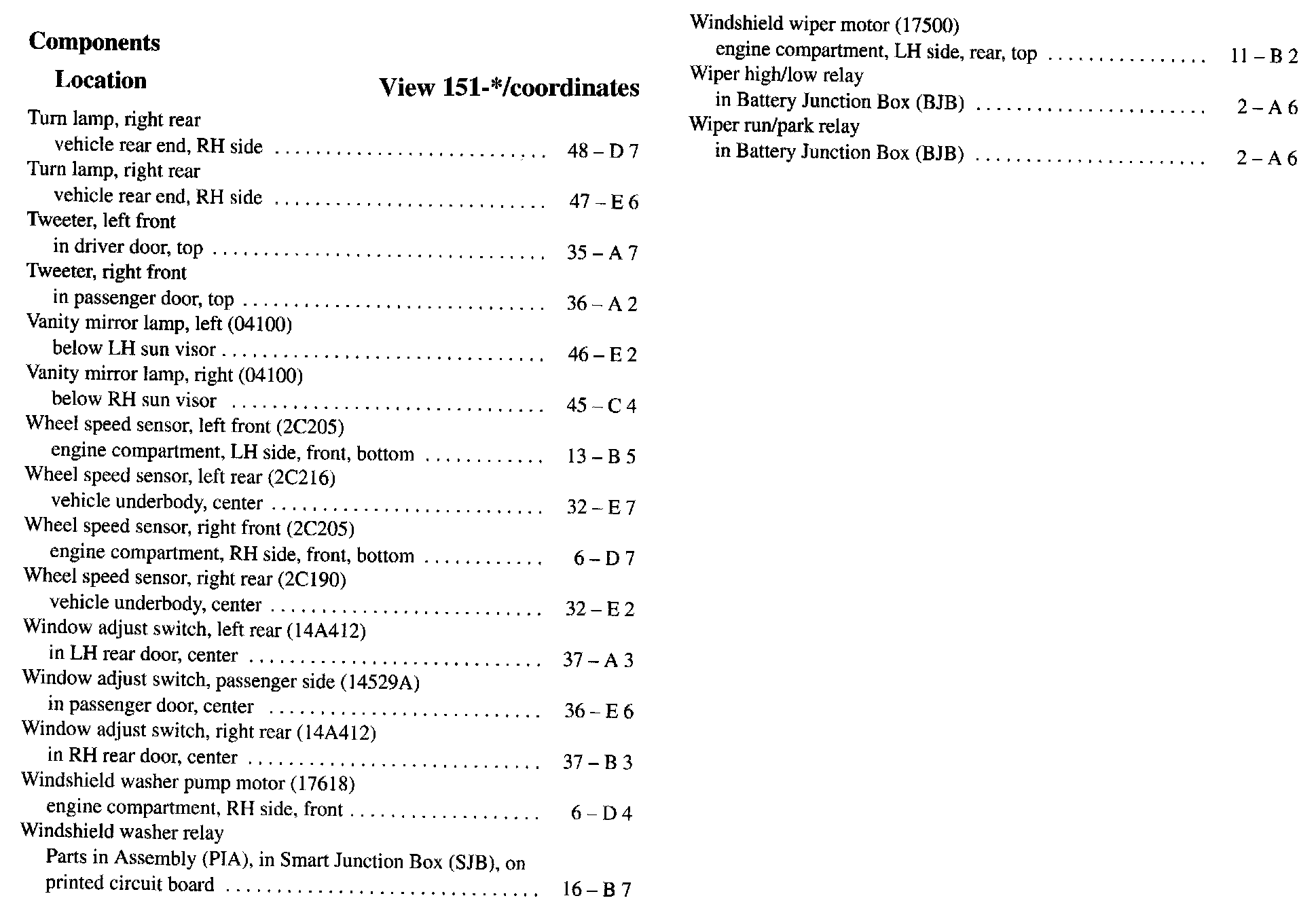 Component Location Index