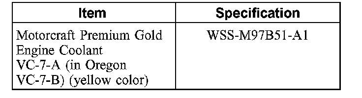 ^ Add Motorcraft Premium Gold Engine Coolant VC-7-A (in Oregon VC-7-13) or equivalent meeting Ford specification WSS-M97B5l-A1 (yellow color). Use the same coolant that was drained from the cooling system. Do not mix coolant types.