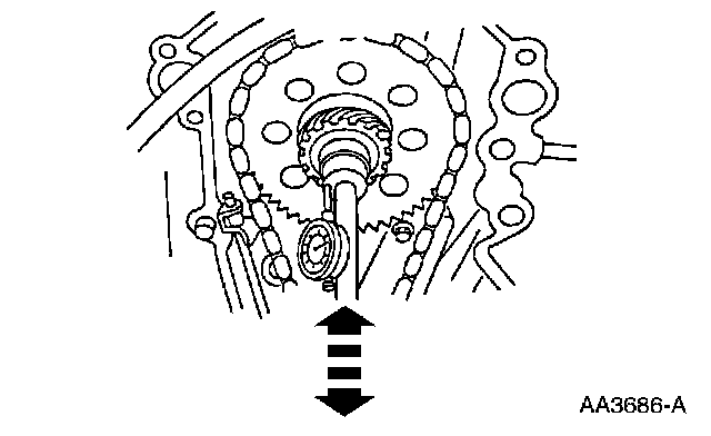 5. Move the camshaft to the front of the cylinder block. Note and record the camshaft end play.