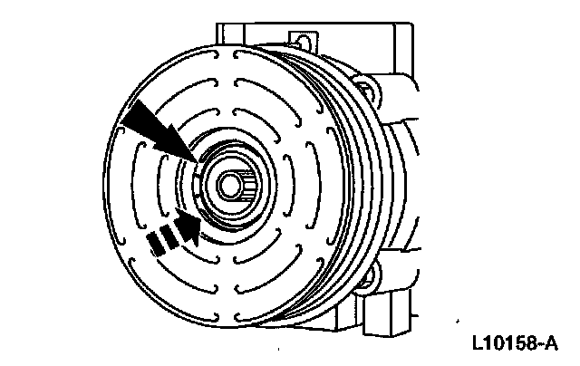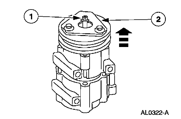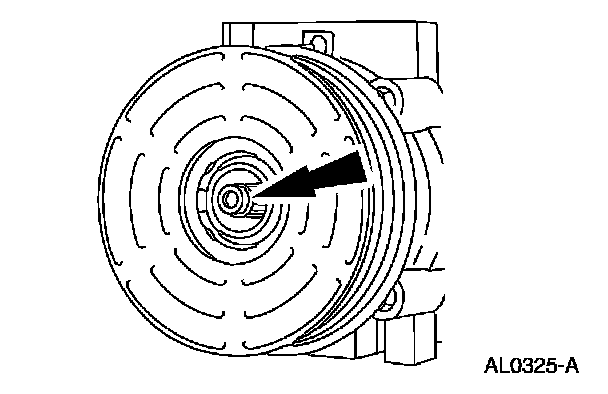 1. NOTE: If installing a new A/C compressor, the A/C clutch components should be reused unless obvious signs of damage are found. If excessive grooving is found, a new A/C clutch disc and hub and A/C compressor pulley must be installed together. Otherwise, each component can be installed individually where needed.