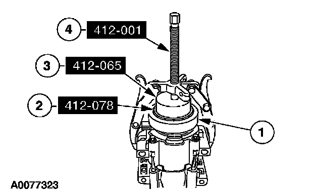 4 Use the special tool to install the A/C compressor clutch field coil until bottomed completely against the A/C compressor.