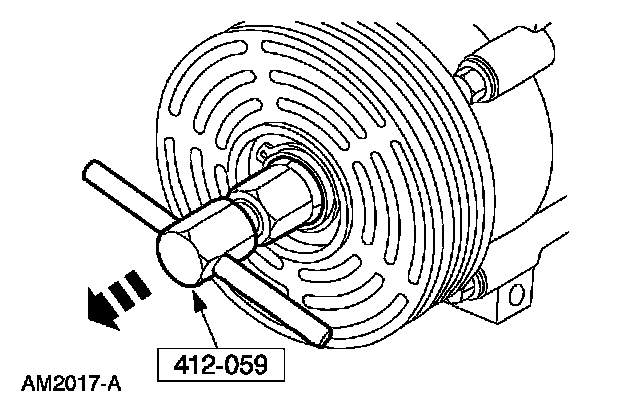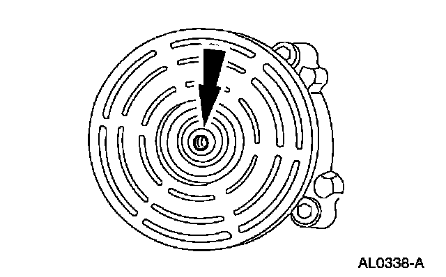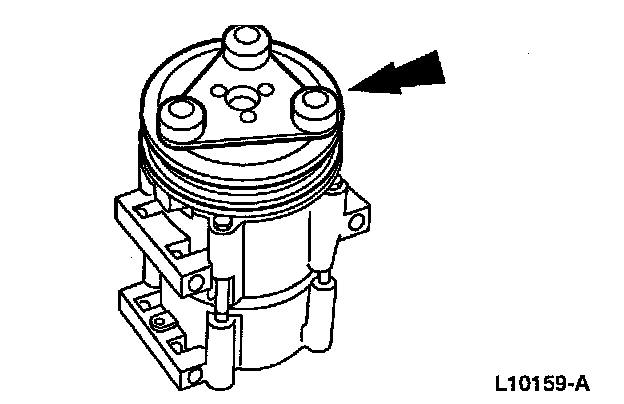1 Thread an 8 x 1.25 mm (0.04 in) bolt into the A/C clutch disc and hub to force it from the A/C compressor shaft (if needed).