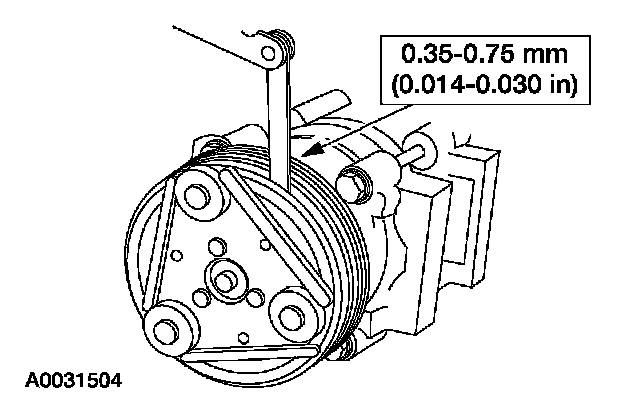 8. Install the A/C clutch disc and hub spacer(s) and the A/C clutch disc and hub.