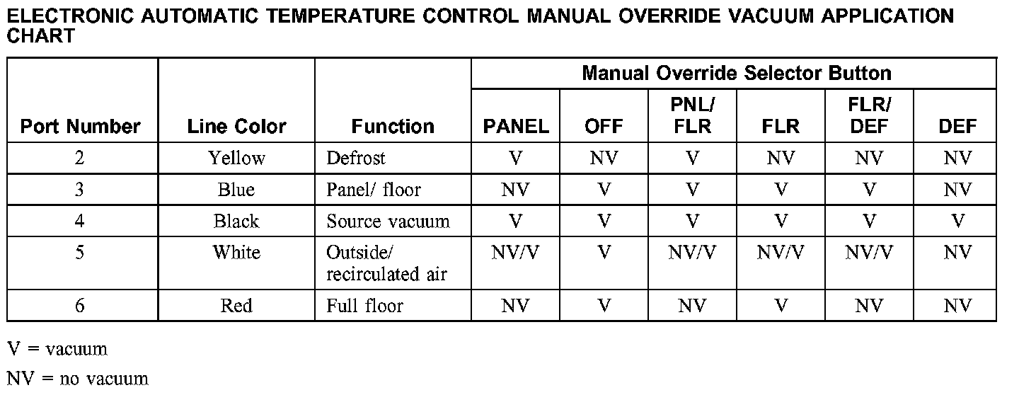 Electronic Automatic Temperature Control Manual Override Vacuum Application Chart: