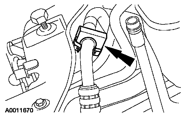 13. Disconnect the condenser to evaporator line spring lock coupling at the evaporator core inlet.
