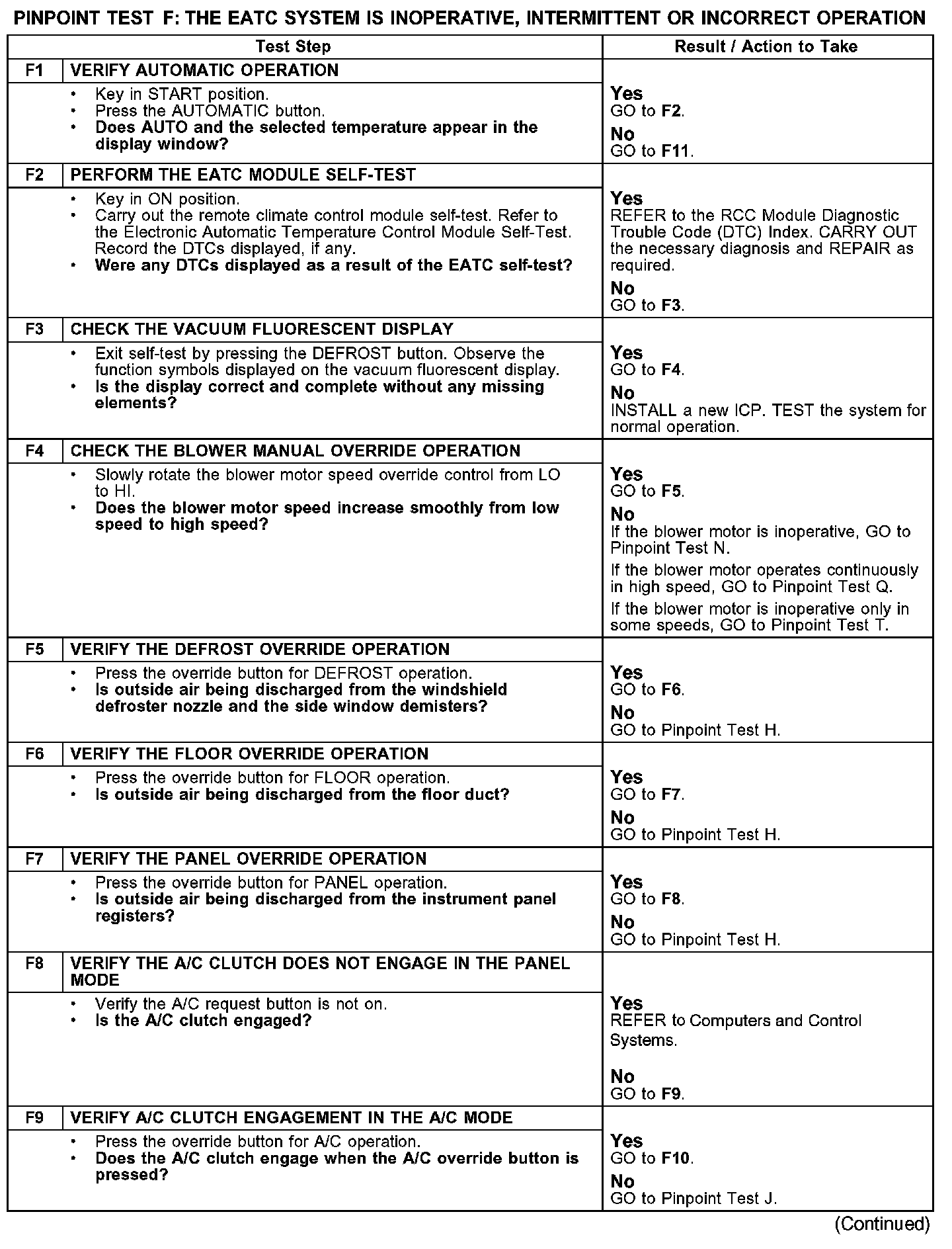PINPOINT TEST F: THE EATC SYSTEM IS INOPERATIVE, INTERMITTENT OR INCORRECT OPERATION