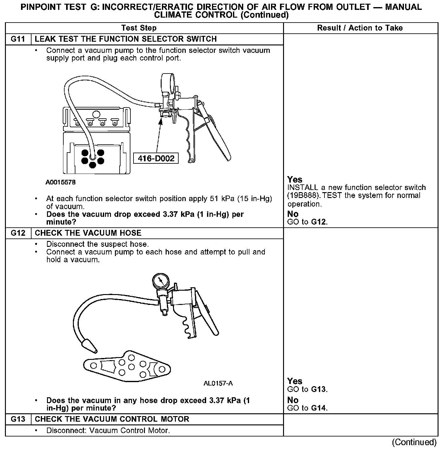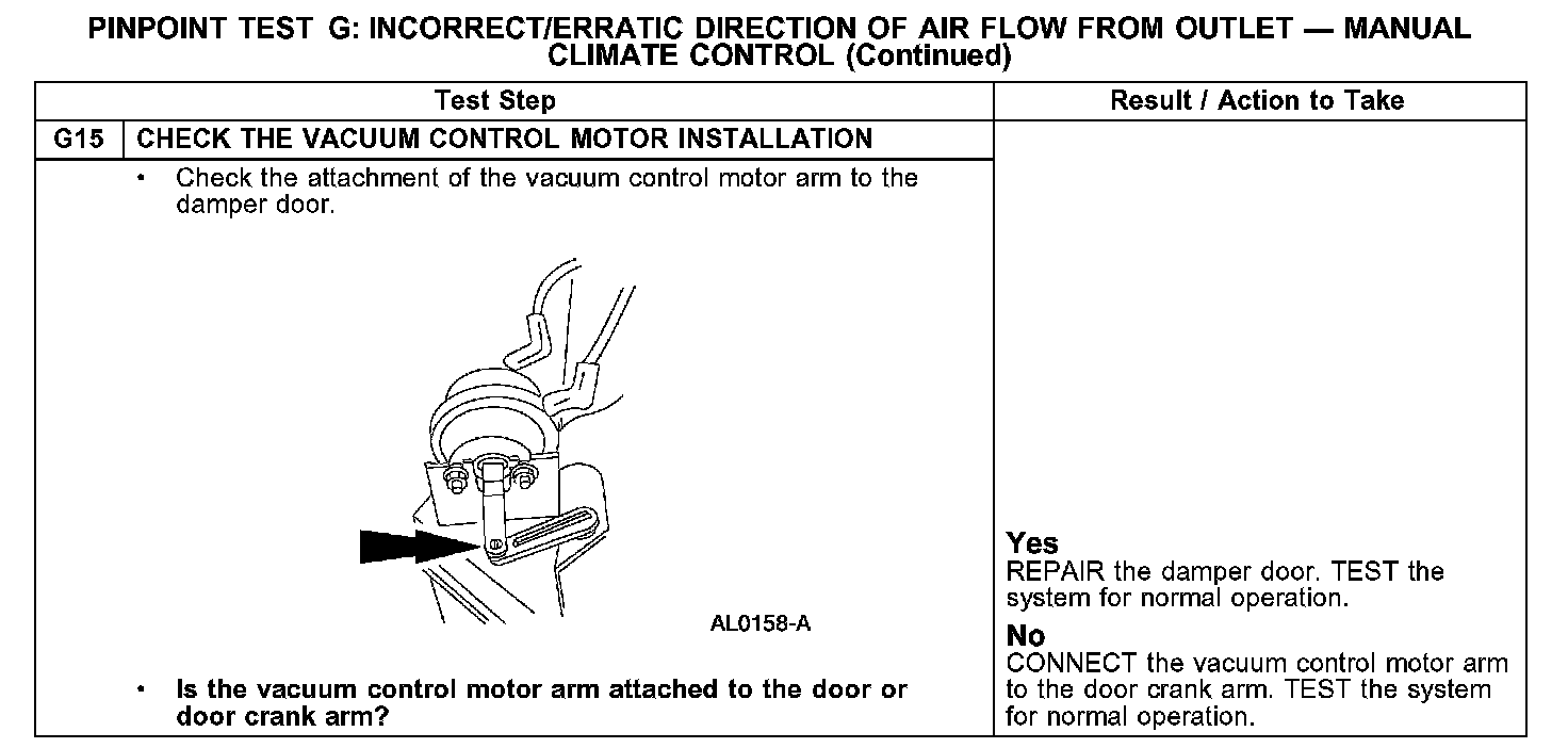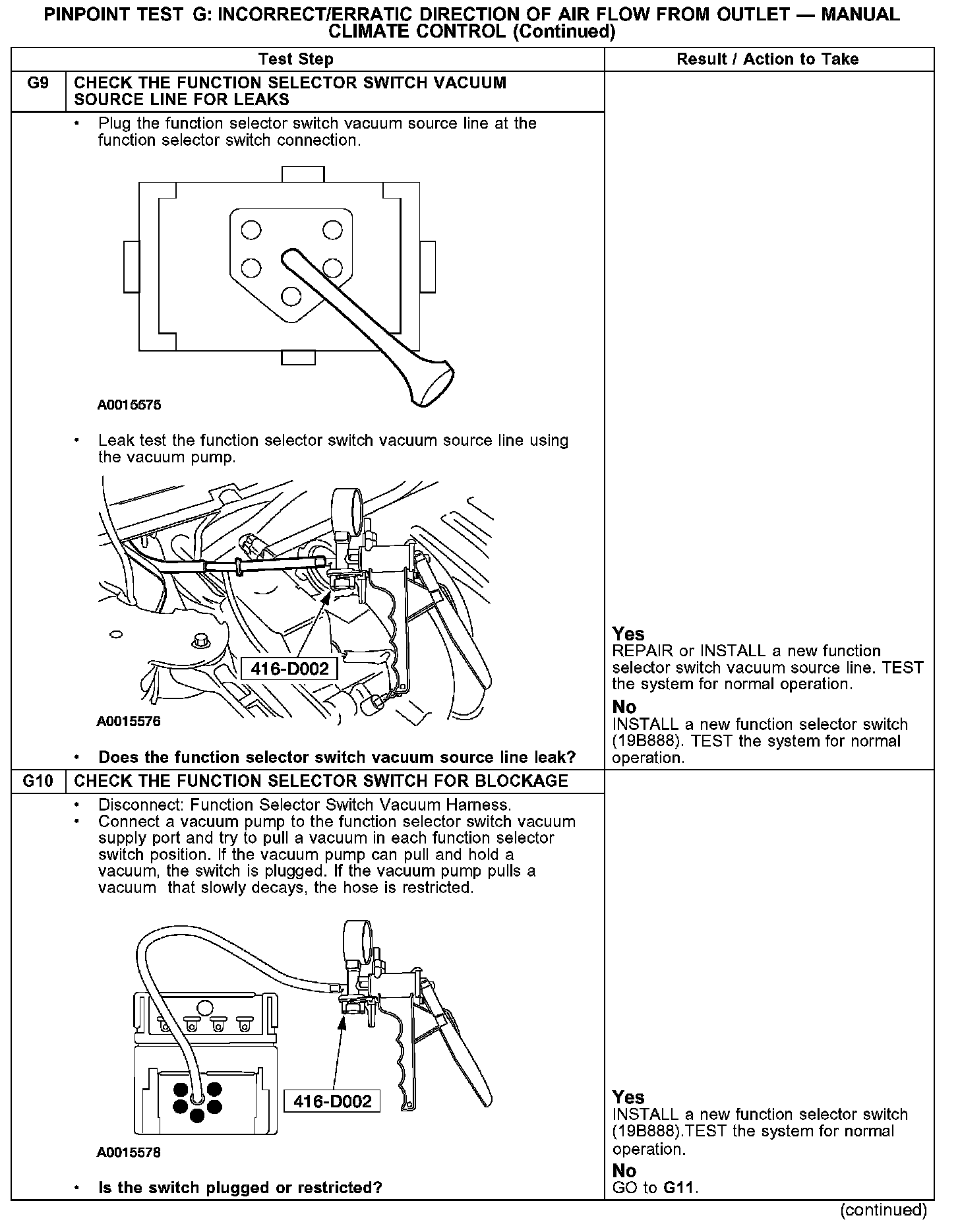 PINPOINT TEST G: INCORRECT/ERRATIC DIRECTION OF AIR FLOW FROM OUTLET - MANUAL CLIMATE CONTROL