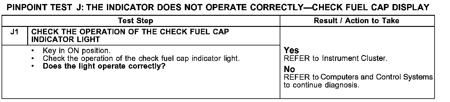 PINPOINT TEST J: THE INDICATOR DOES NOT OPERATE CORRECTLY - CHECK FUEL CAP DISPLAY