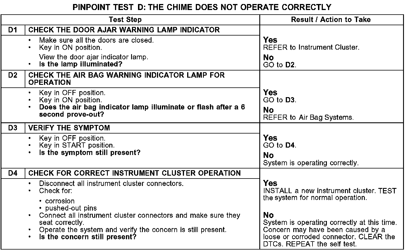 PINPOINT TEST D: THE CHIME DOES NOT OPERATE CORRECTLY