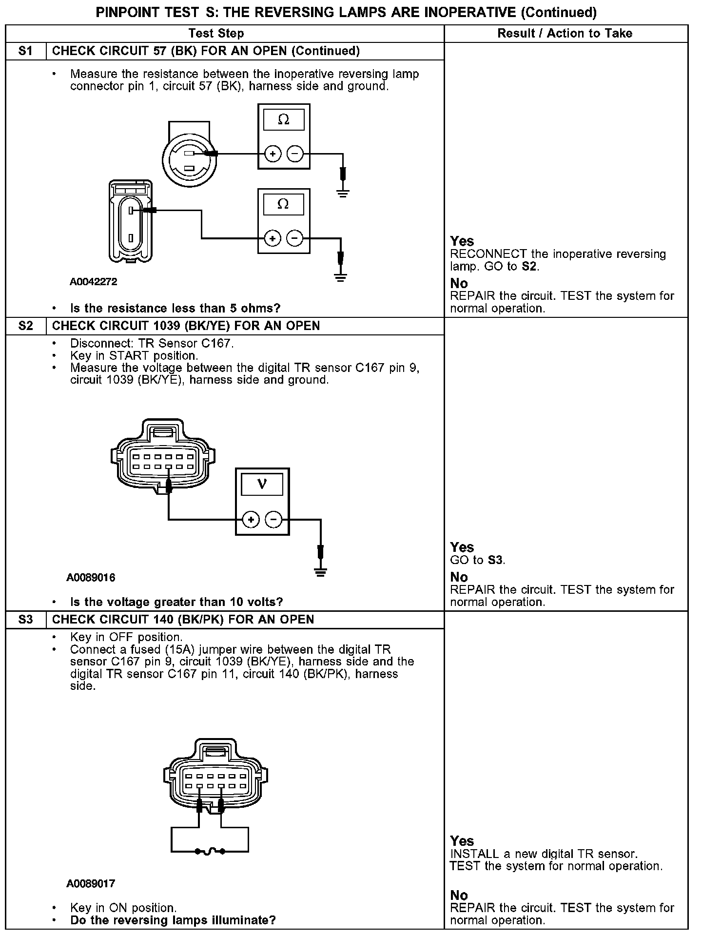 PINPOINT TEST S: THE REVERSING LAMPS ARE INOPERATIVE