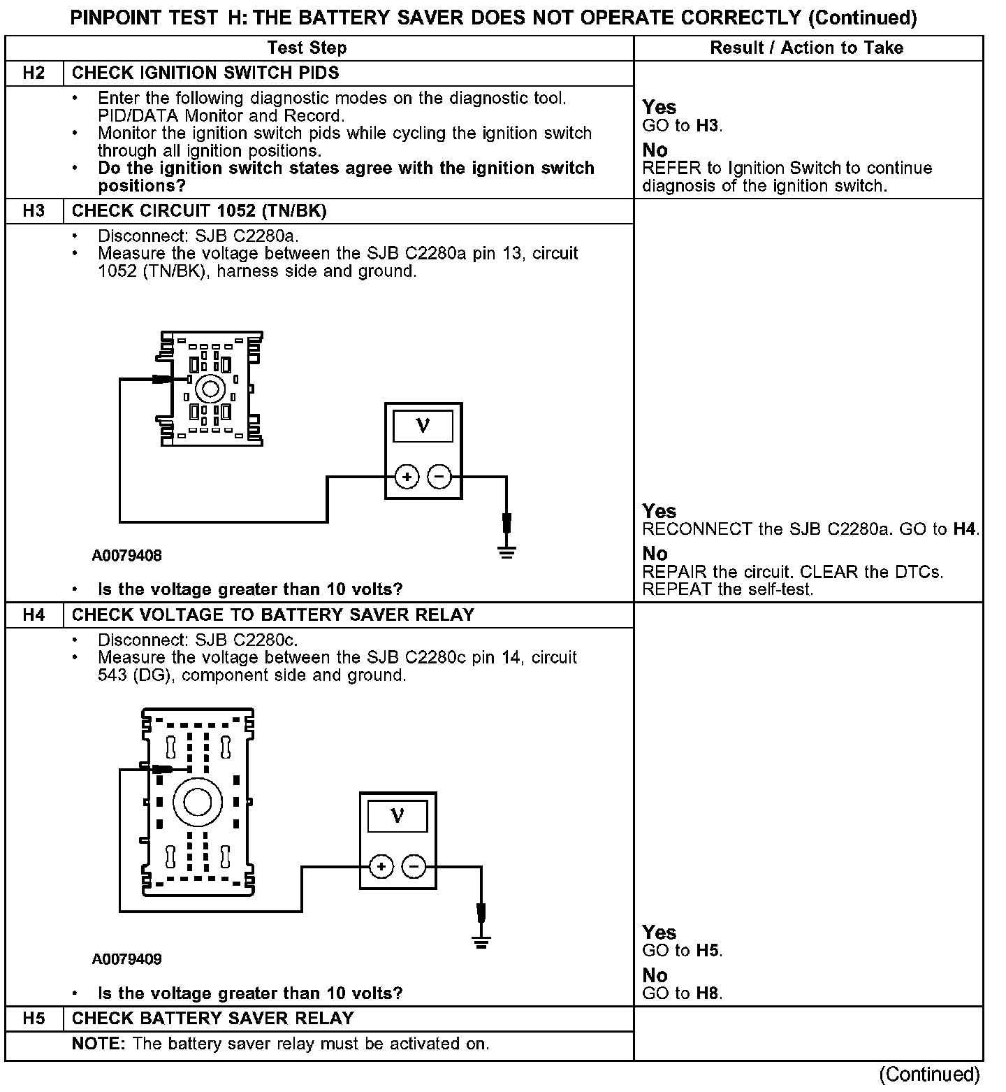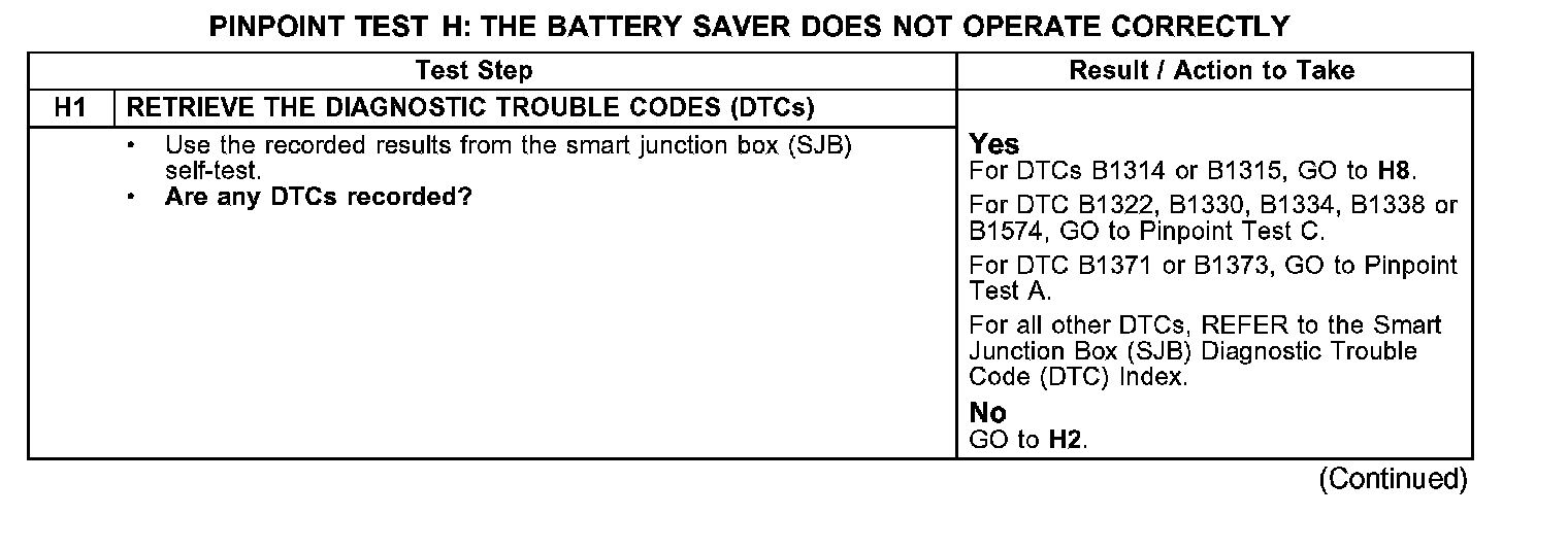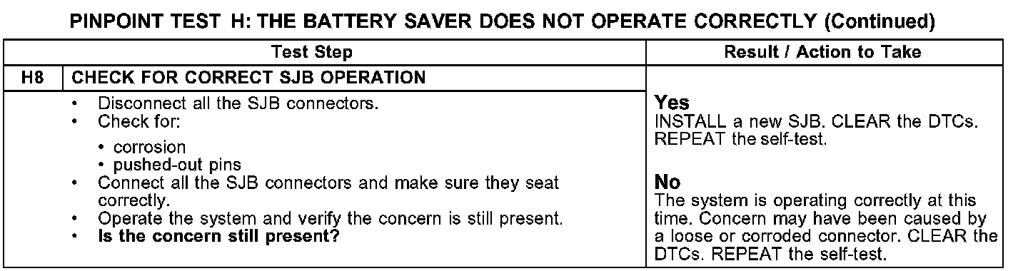 PINPOINT TEST H: THE BATTERY SAVER DOES NOT OPERATE CORRECTLY