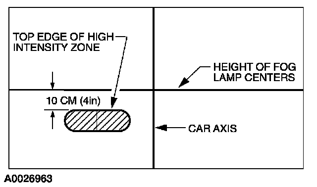 3. The correct visual aim for the fog lamps is with the top edge of the high-intensity zone 10 cm (4 in) below the horizontal center of the fog lamps.