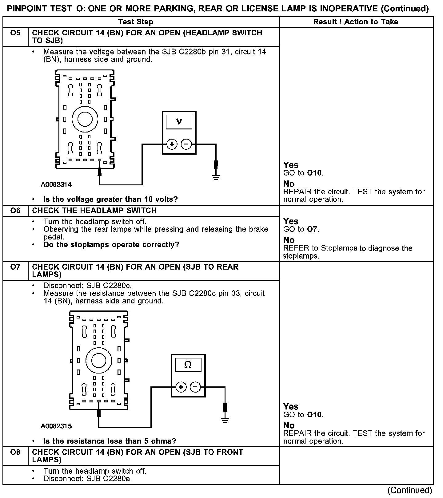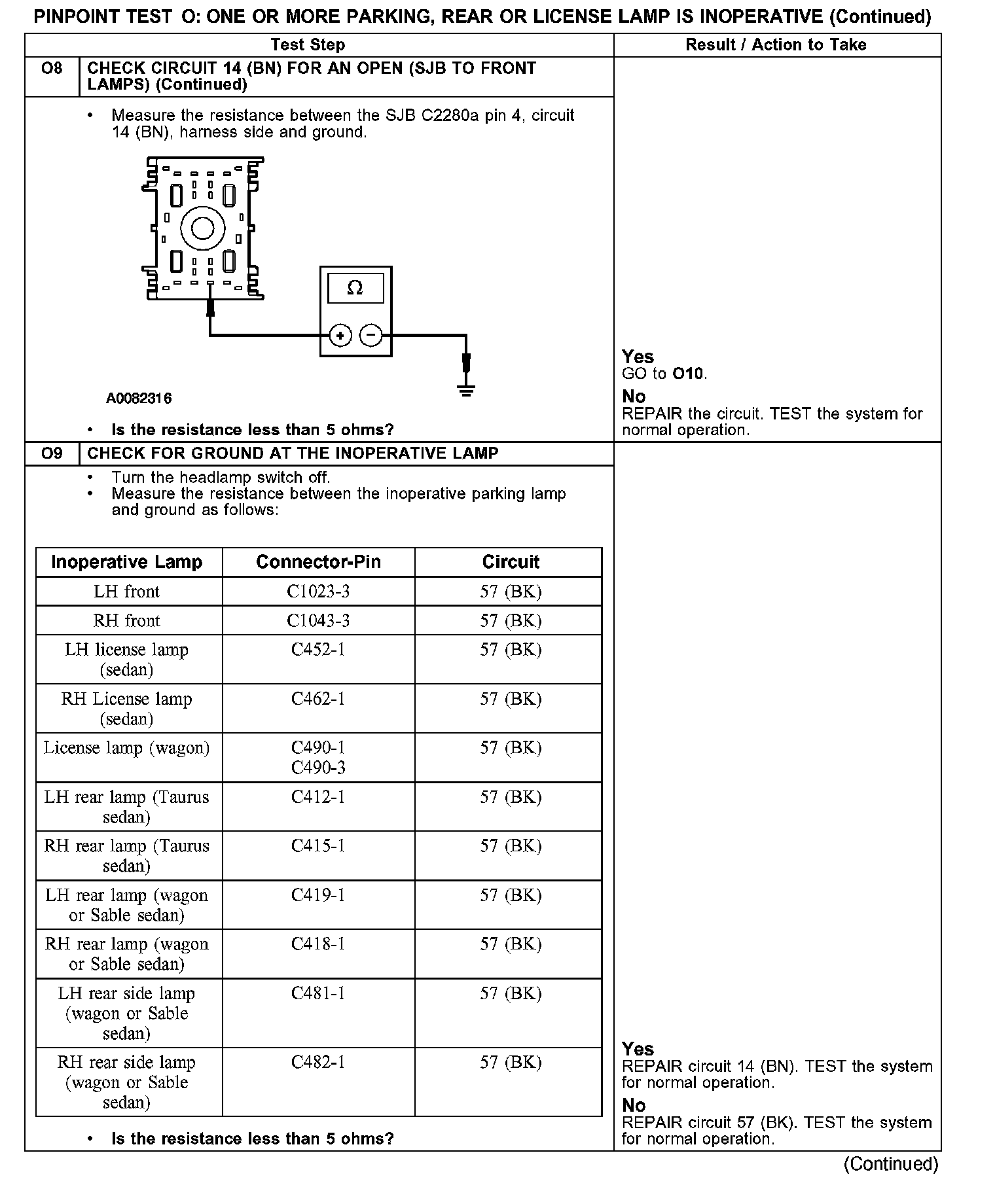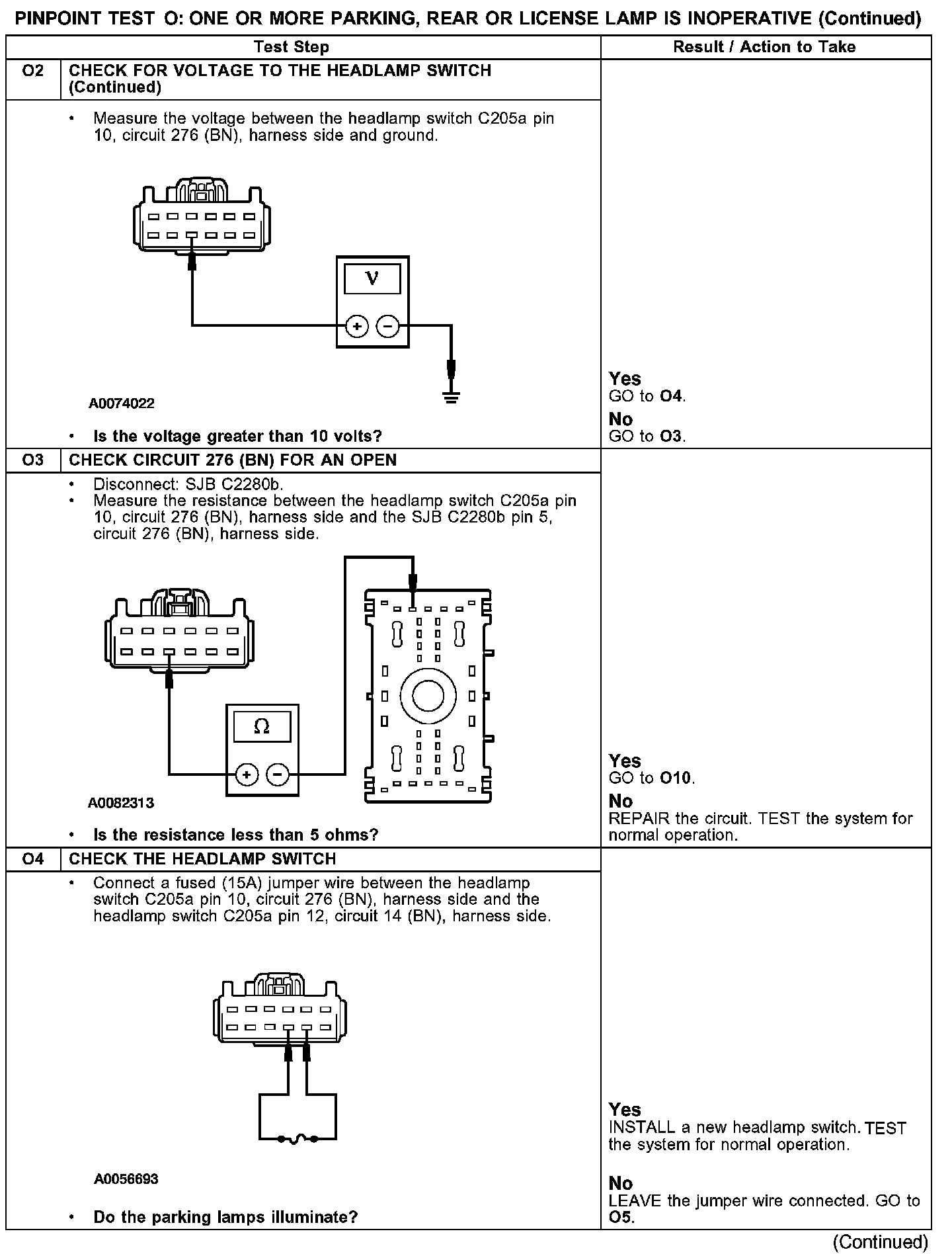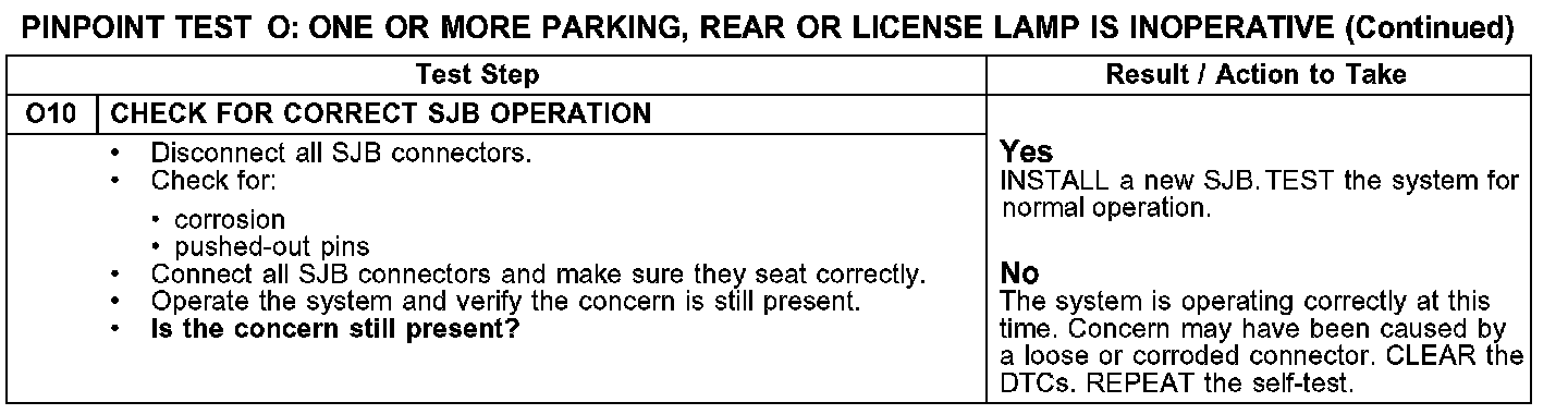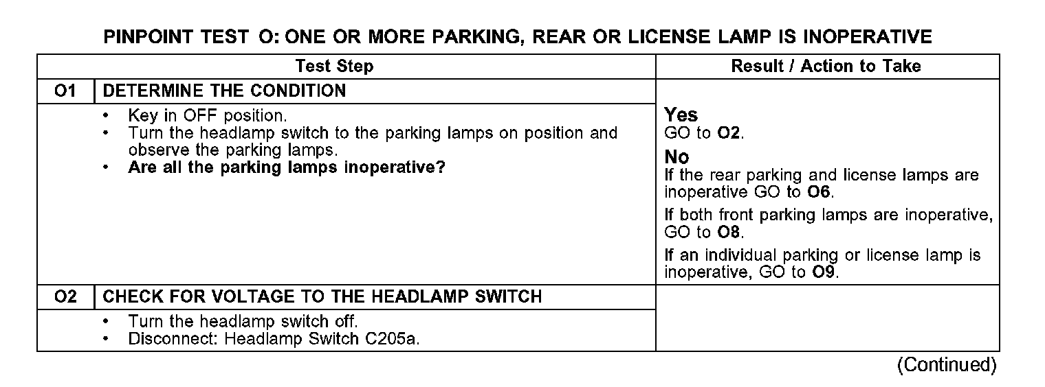 PINPOINT TEST O: ONE OR MORE PARKING, REAR OR LICENSE LAMP IS INOPERATIVE