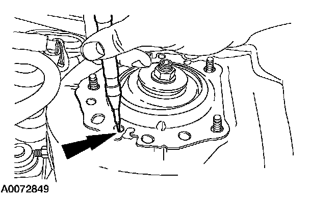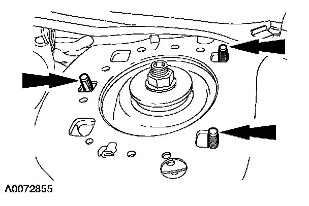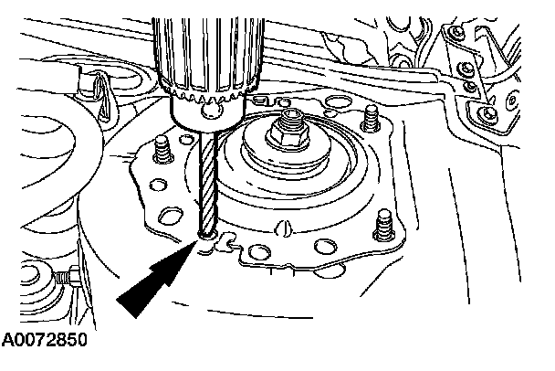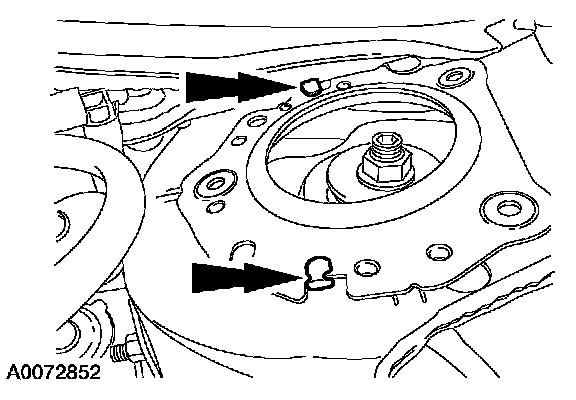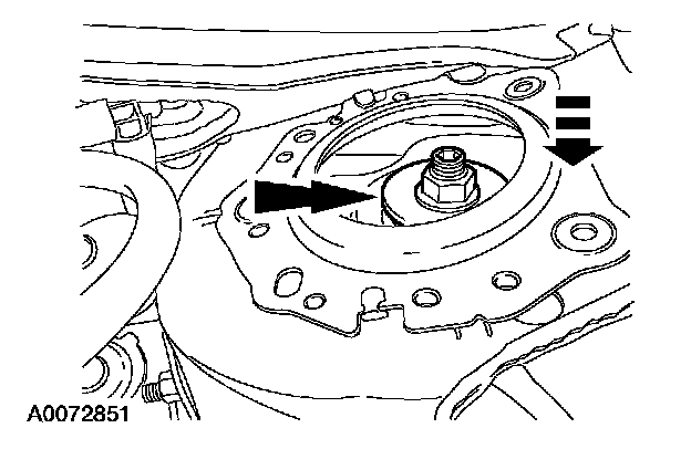 5. Position the vehicle on a hoist. Raise the vehicle enough to push the strut downward. The strut studs must be below the alignment plate.